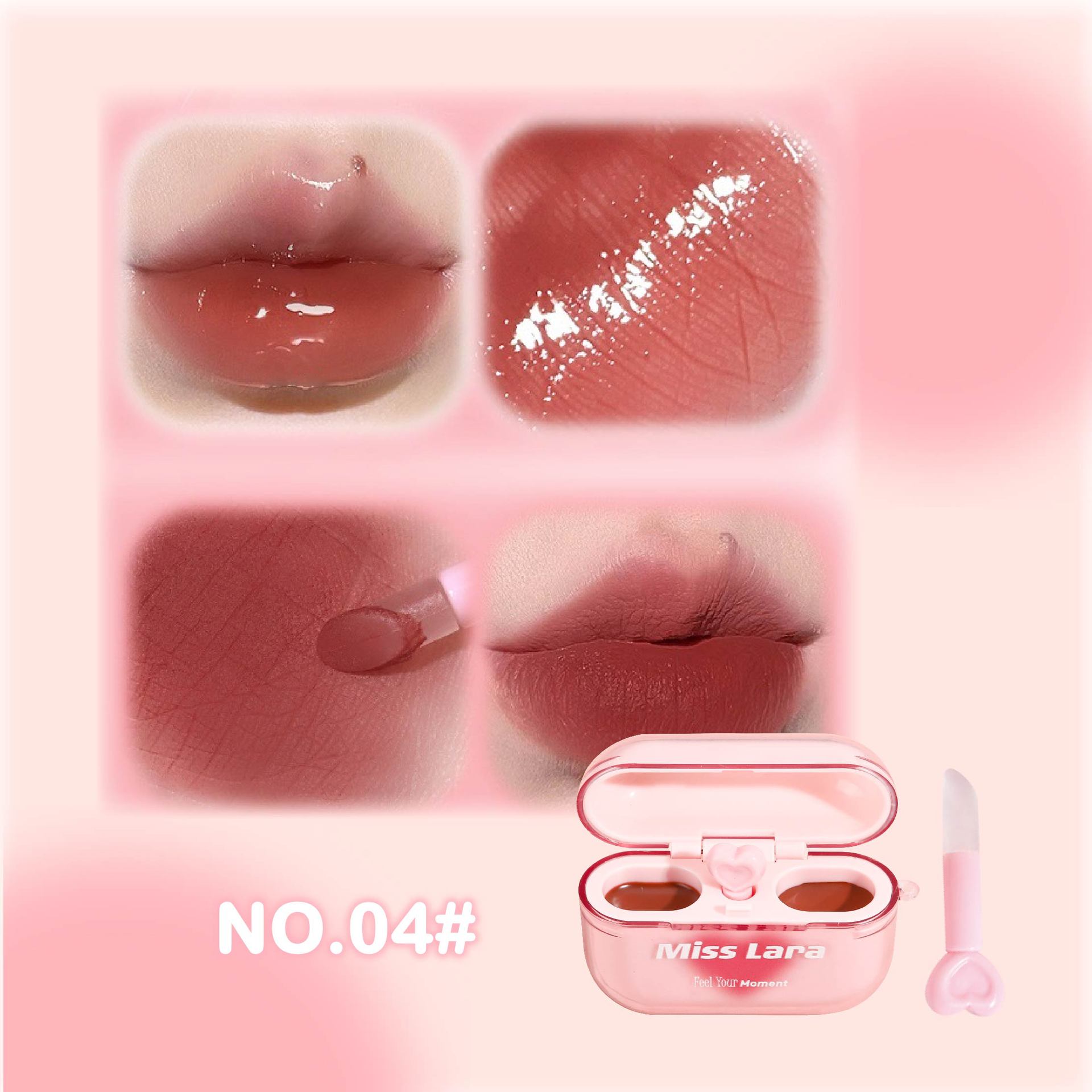 MISS LARA【SNSで話題沸騰】リップグロス+マットリップ かわいいデザイン 鏡面 水光 保湿 柔らかい airpodsリップ グラスリップ ヌード口紅 リップティント 泥リップ 発色が可愛 潤い 長持ち 口紅