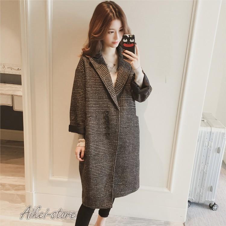 レディース チェスターコート チェック柄 ロング丈 高級感 韓国風 着痩せ ゆったり 通勤 秋冬 40代