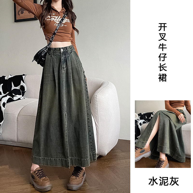 【大人気】ハイウエストスリットデニムスカート レディース新作 ゆったりシルエット 細見え ミディ丈スカート
