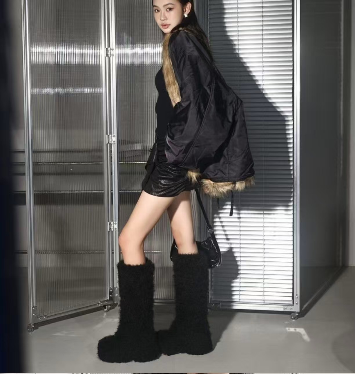 ロングブーツ ふわもこ フェイクファーブーツ モコモコブーツ フェイクファー ロングブーツ レディース 厚底 美脚 レディース ロング丈 ブーツ 防寒 おしゃれ 海外コーデ C465