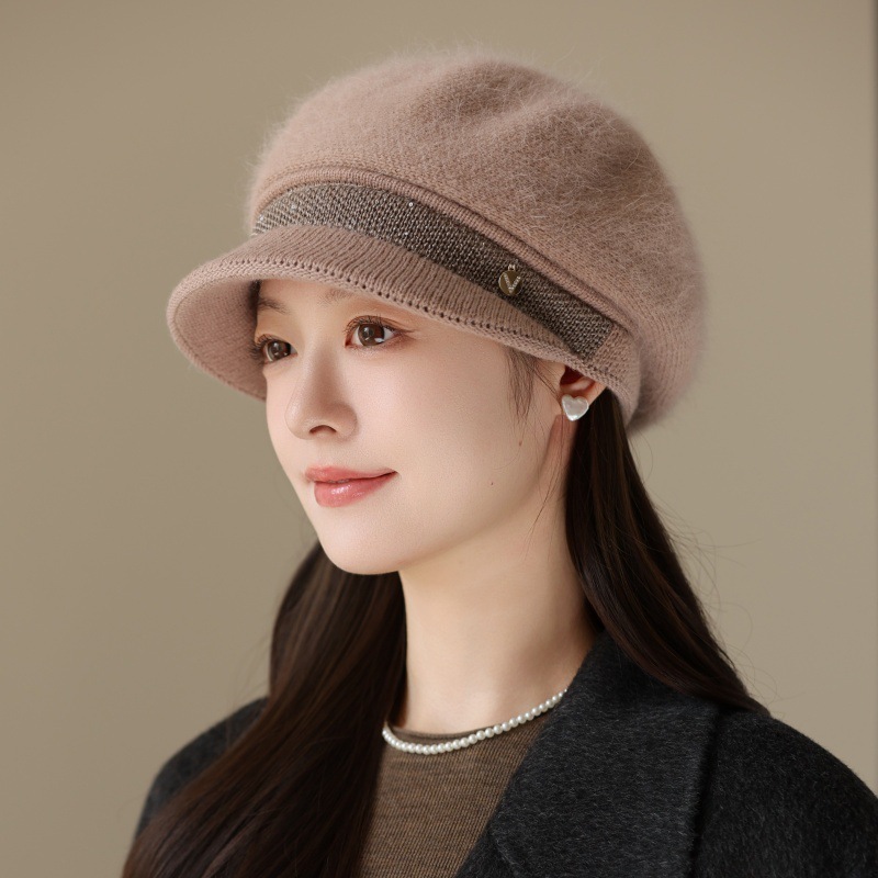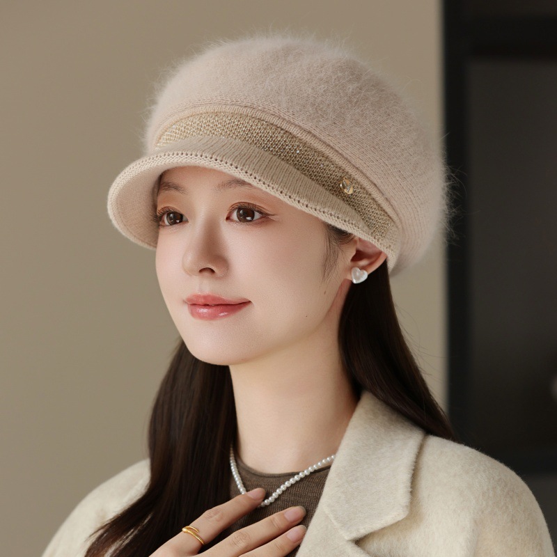 冬 新作 ニット帽 ニット帽 ウサギ毛 帽子 単色 ベレー キャップ 保温帽