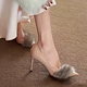 【3日出荷】スリム効果ブラックポインテッドトゥファー付きパンプス レディーススタイレット セクシー新作冬季オフィスシューズ ヒール