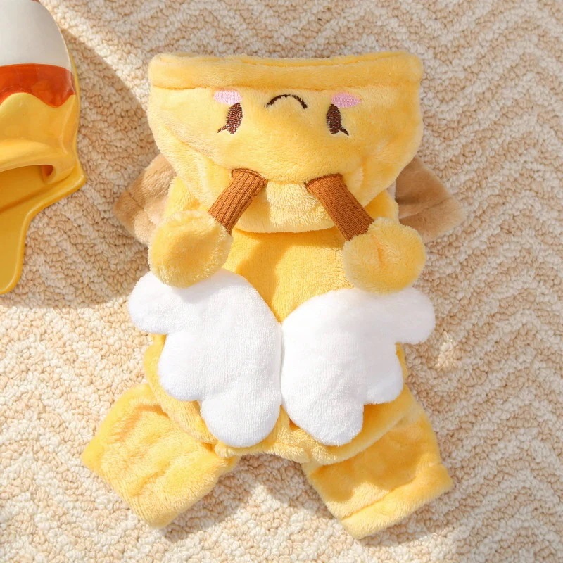 【 迅速な出荷 】犬服 冬ペット服 フリース加工フランネル四脚服 ペット犬猫用秋冬保温服用品 キャラクター蜂 テディベア・ビションフリーゼ