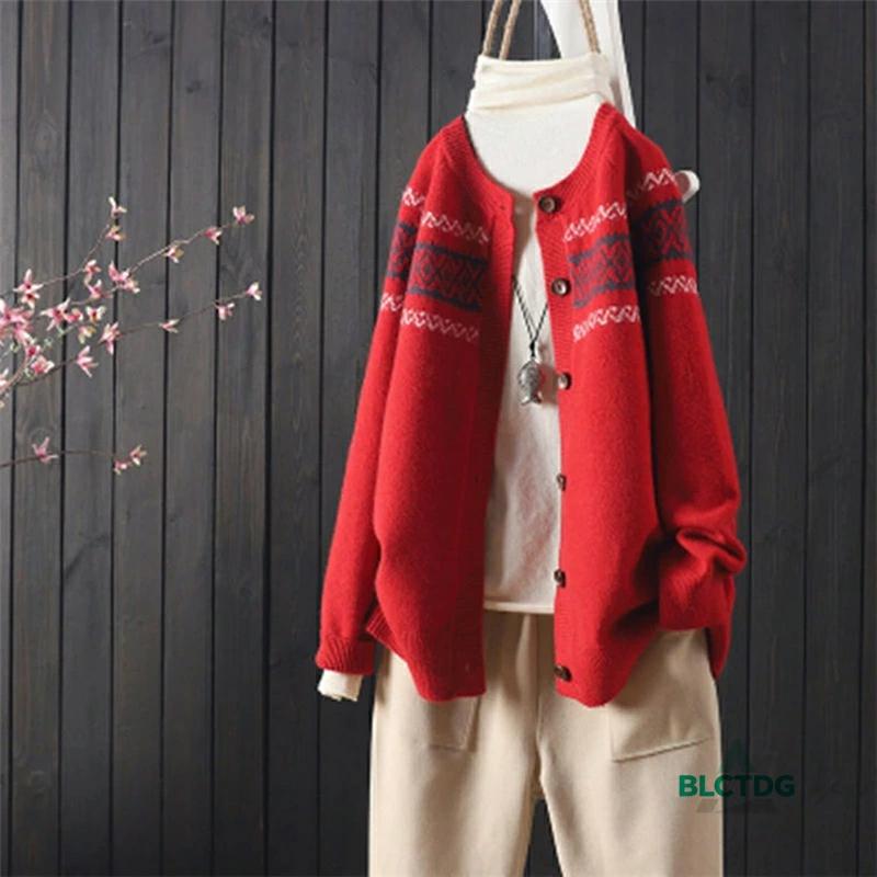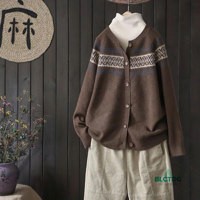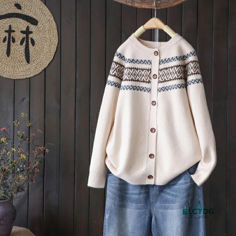 ニットセーター エスニック 秋冬 トップス 柔らかい 羽織り 前開き レディース カジュアル 幾何柄 ニットカーディガン 長袖 カットソー 【30%OFFセール】ニット カーディガン