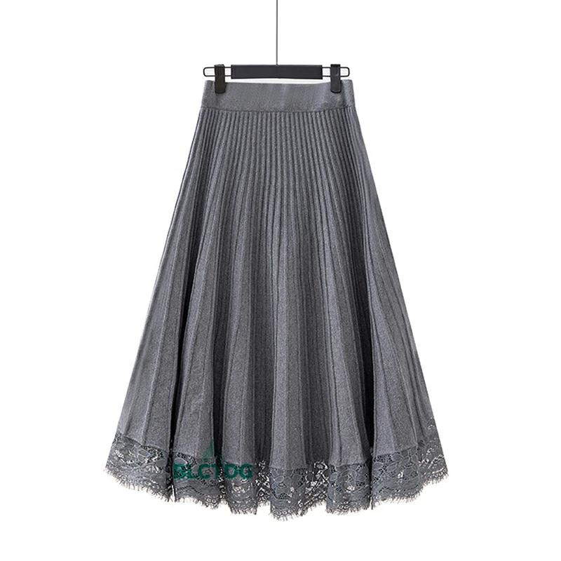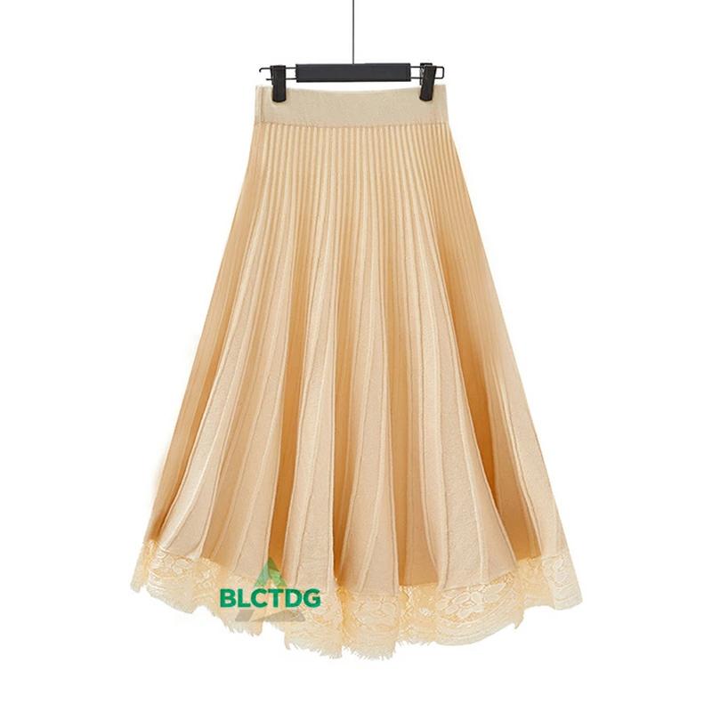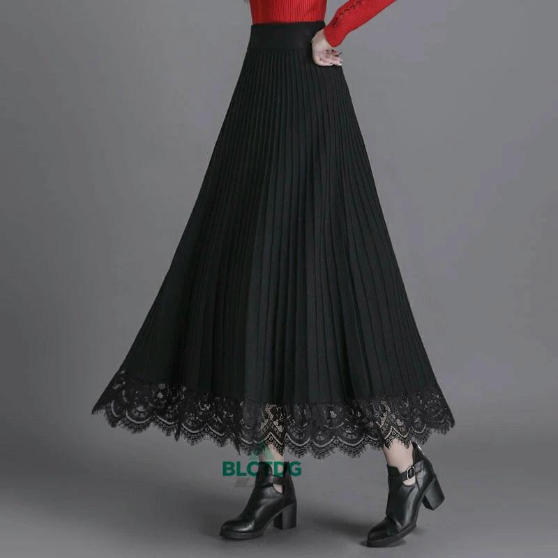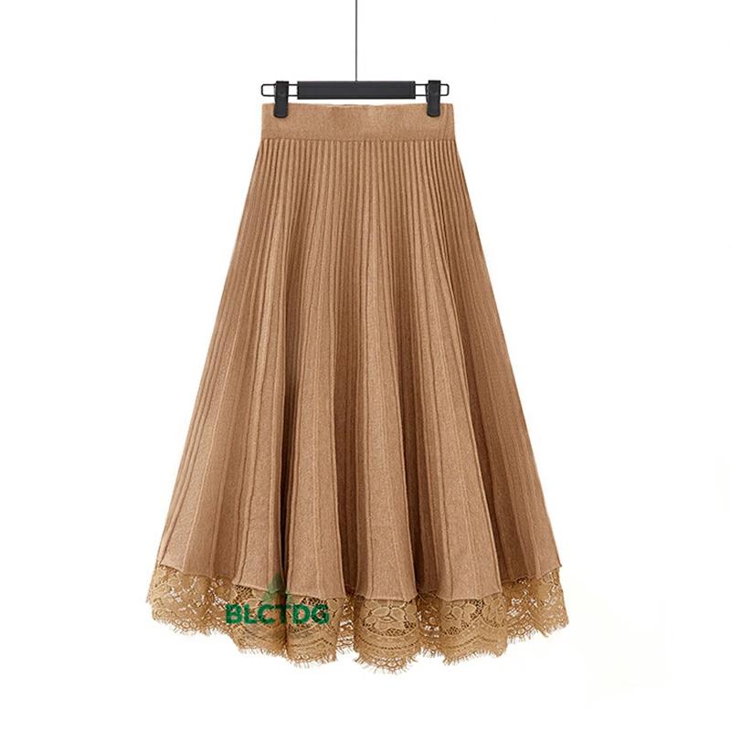 ウエストゴム 無地 プリーツ ニット ロング丈 レディース 体型カバー 切替 Aラインスカート 【30%OFFセール】ロングスカート 洗える プリーツスカート 秋冬 レース 大きいサイズ