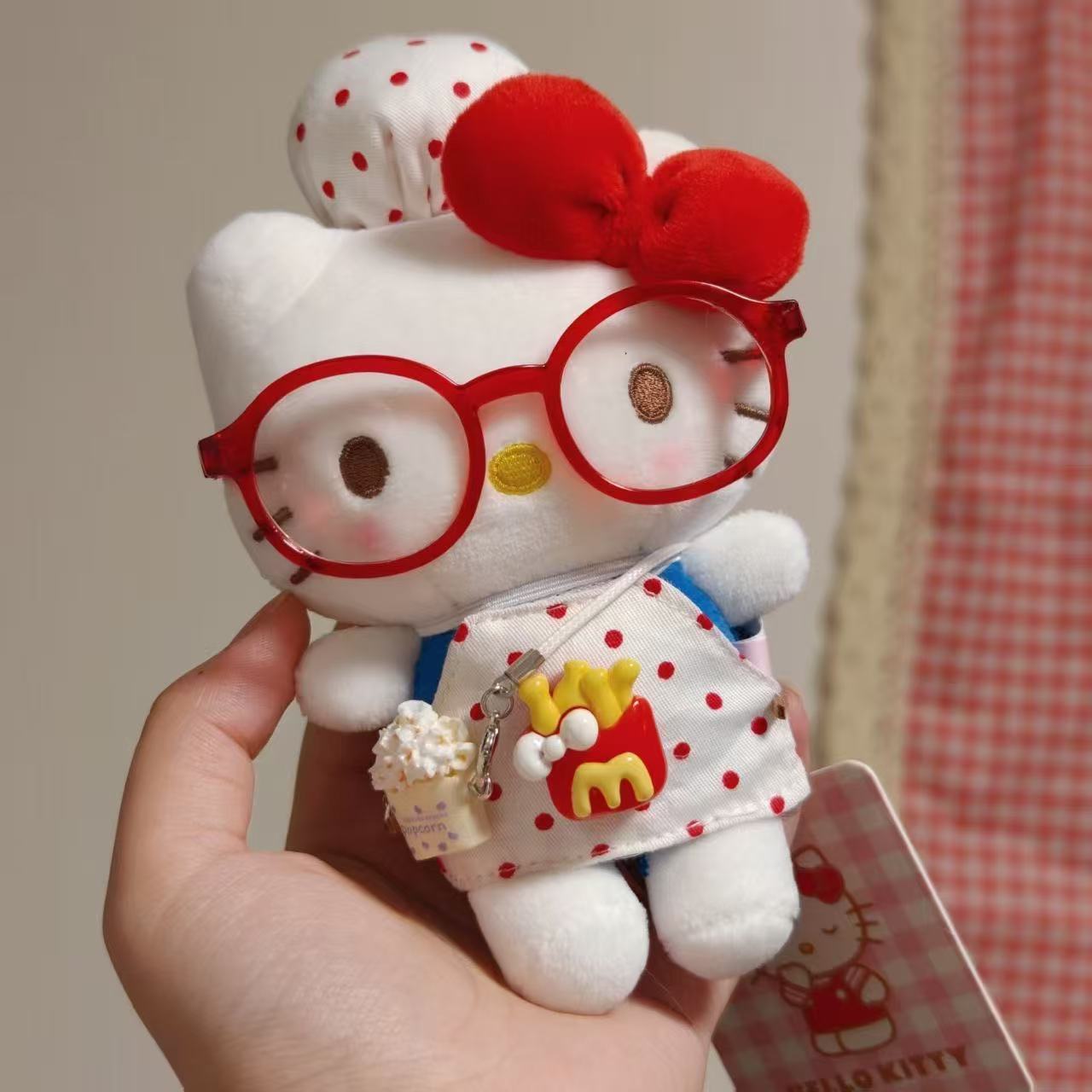 マクドナルドkittyキャラクター赤いメガネエプロンペンダント人形ランドセル人形ぬいぐるみペンダントキーホルダー女性 可愛いペンダント ぬいぐるみ hellokitty 可愛い人形