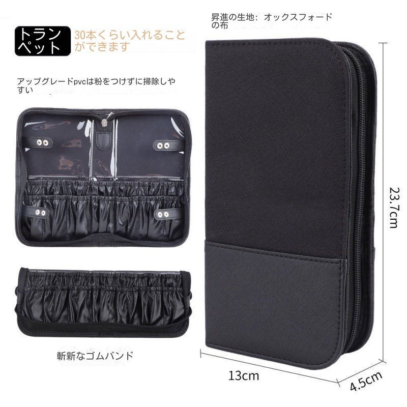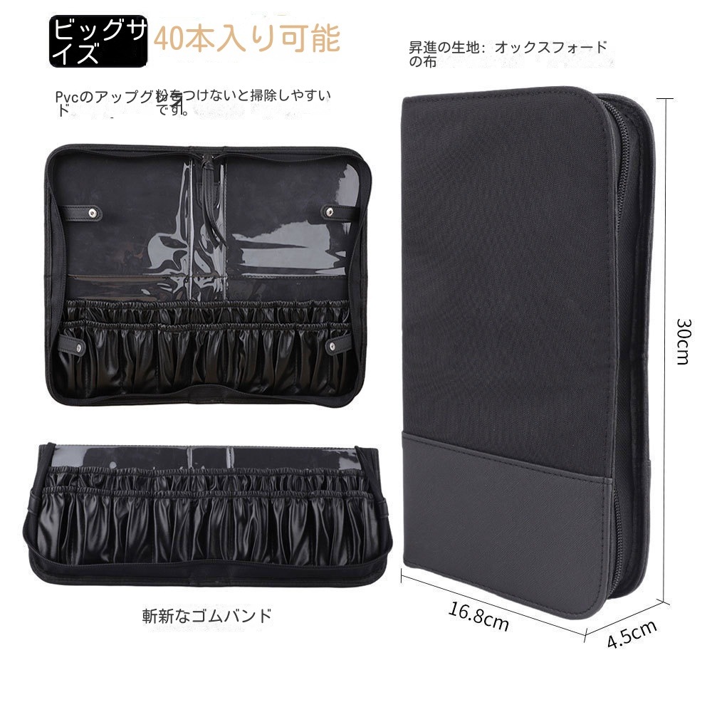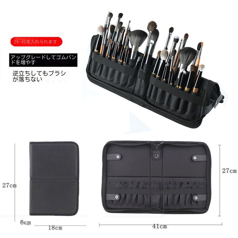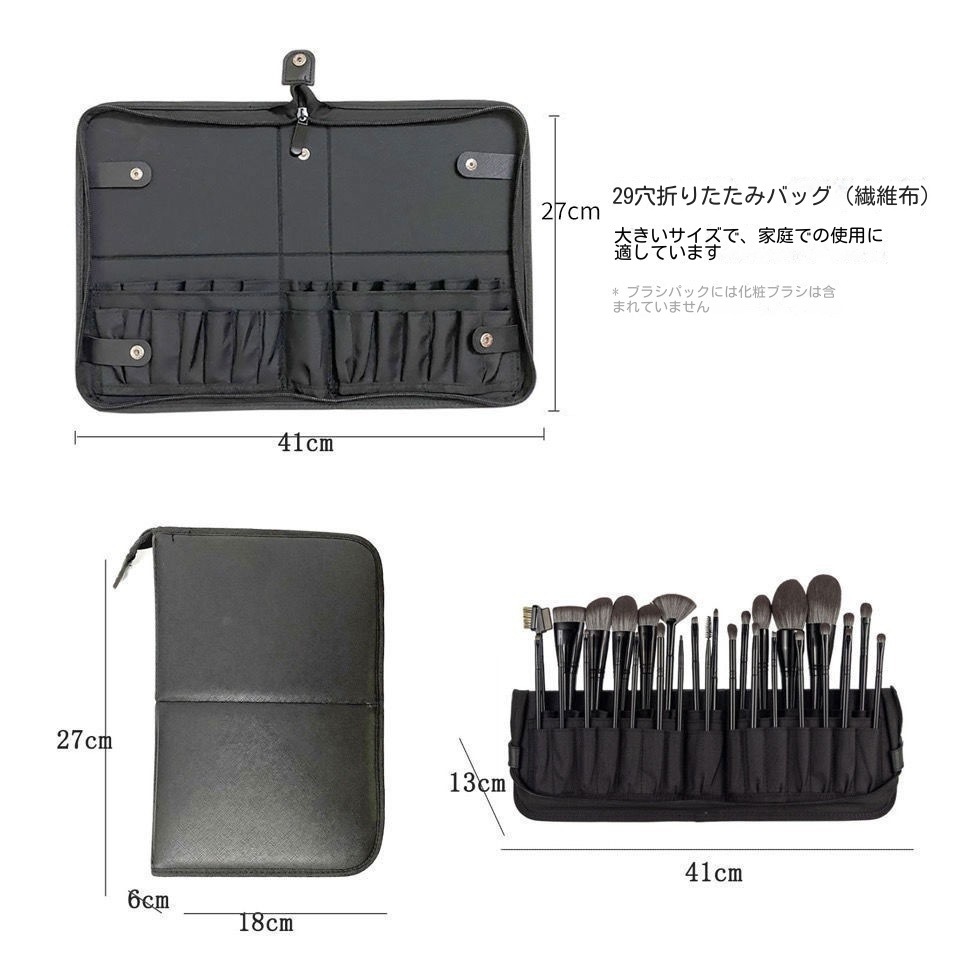 メイクブラシケース 大容量 40本収納 29ポケット ブック型 折りたたみ ブラック 高級感 プロ用 化粧ブラシ収納 旅行用 持ち運び便利