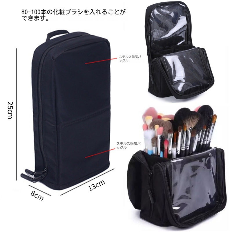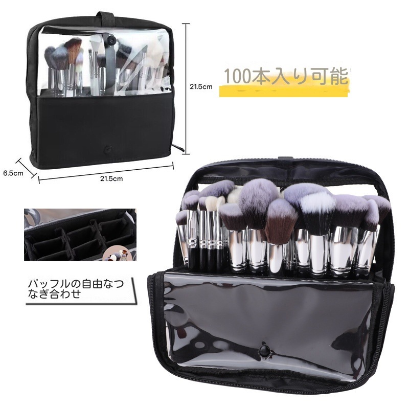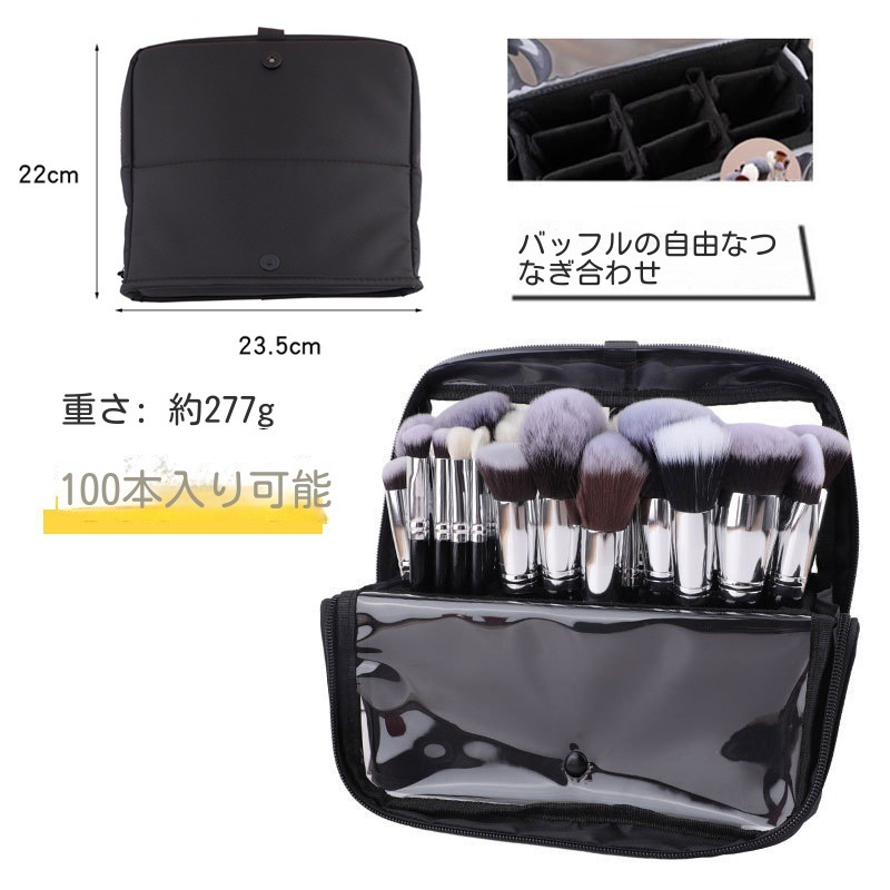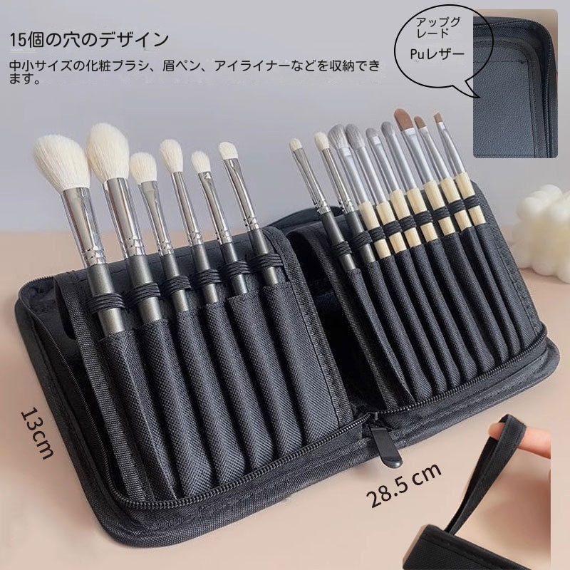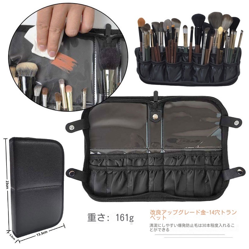 メイクブラシケース 大容量 40本収納 29ポケット ブック型 折りたたみ ブラック 高級感 プロ用 化粧ブラシ収納 旅行用 持ち運び便利