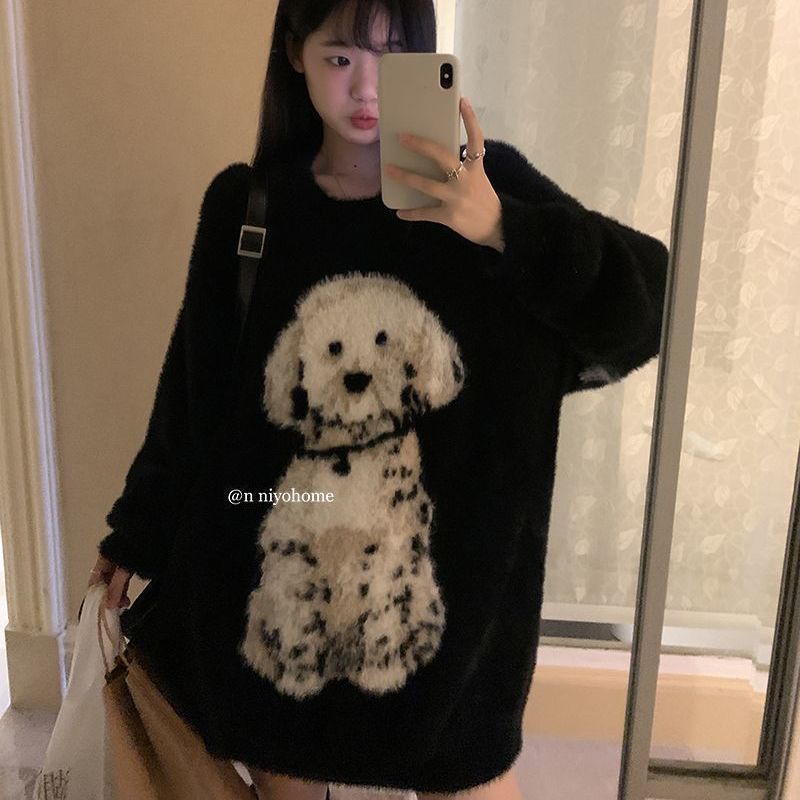 レディース 2026 秋冬 新しい 厚手 ブラック 高級 セーター 超きれい まだら犬 ジャカード ゆったり 怠惰 ニット