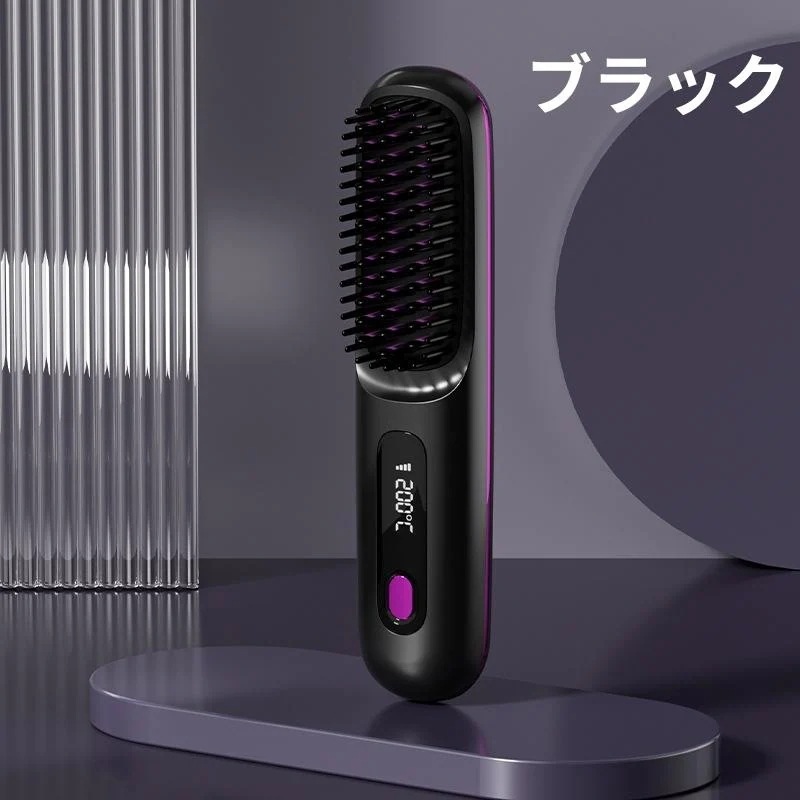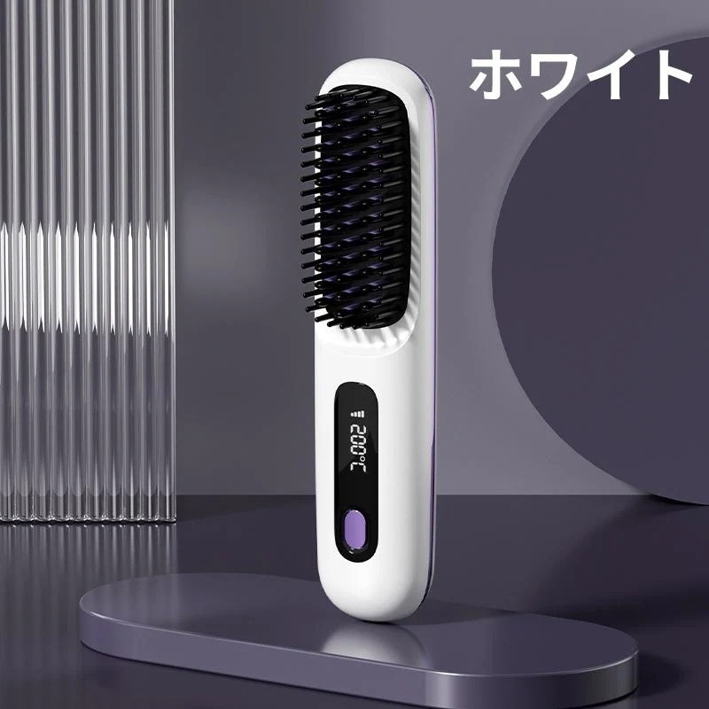【3日以内の配達】ヘアアイロンブラシ ヘアアイロン コードレス 充電式 ミニ 温度表記 ヒートブラシ 急速加熱 ストレートアイロン マイナスイオン 携帯用 前髪 V358