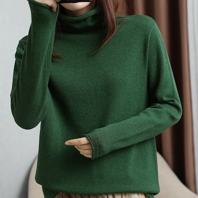 プルオーバー レディース 春秋冬 新作 無地 ゆったり オーガニックコットン ハイネック 高級質感 ニット 長袖 シンプル カジュアル インナー