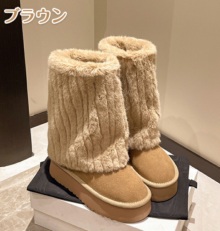 ムートンブーツ ロングブーツ 厚底 4cm 身長アップ レディース 裏ボア 裏起毛 もこもこ 防寒 保温 軽量 あったか 滑り止め おしゃれ スノーシューズ 暖かい カジュアル 歩きやすい 春 秋 冬