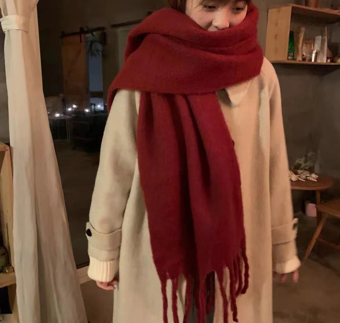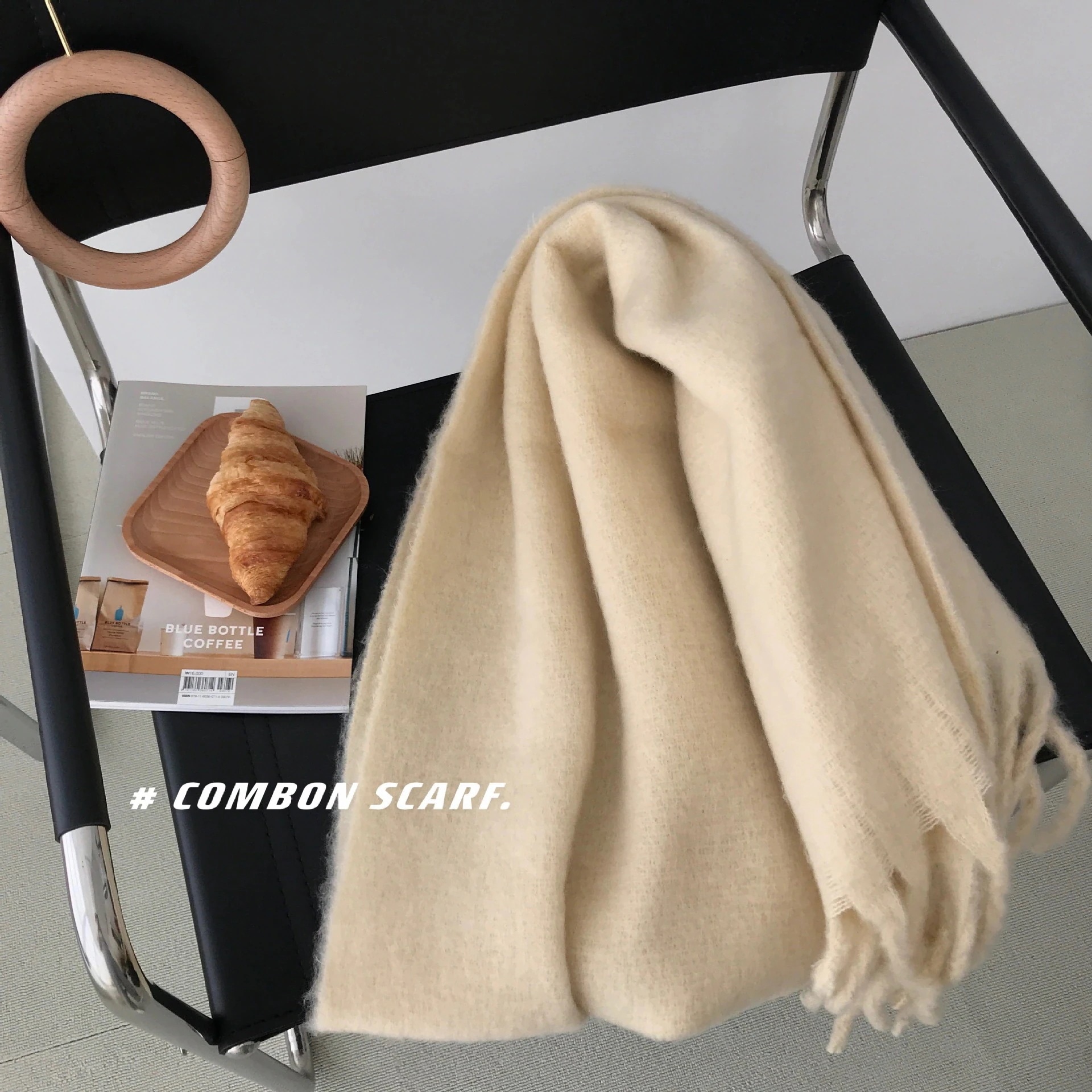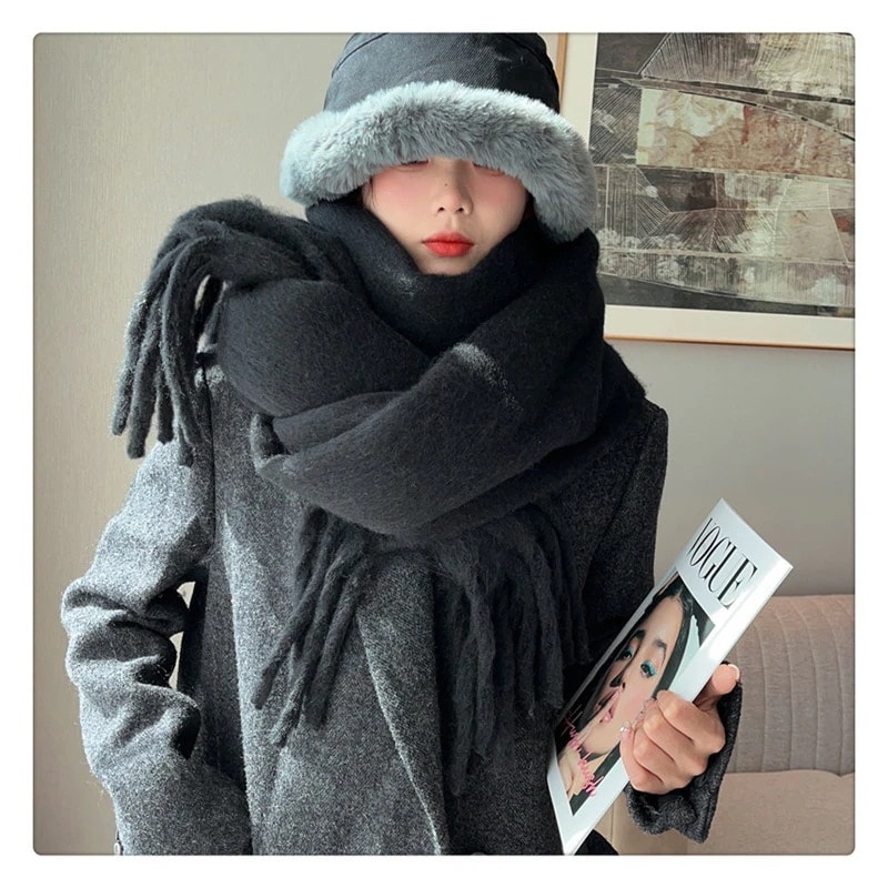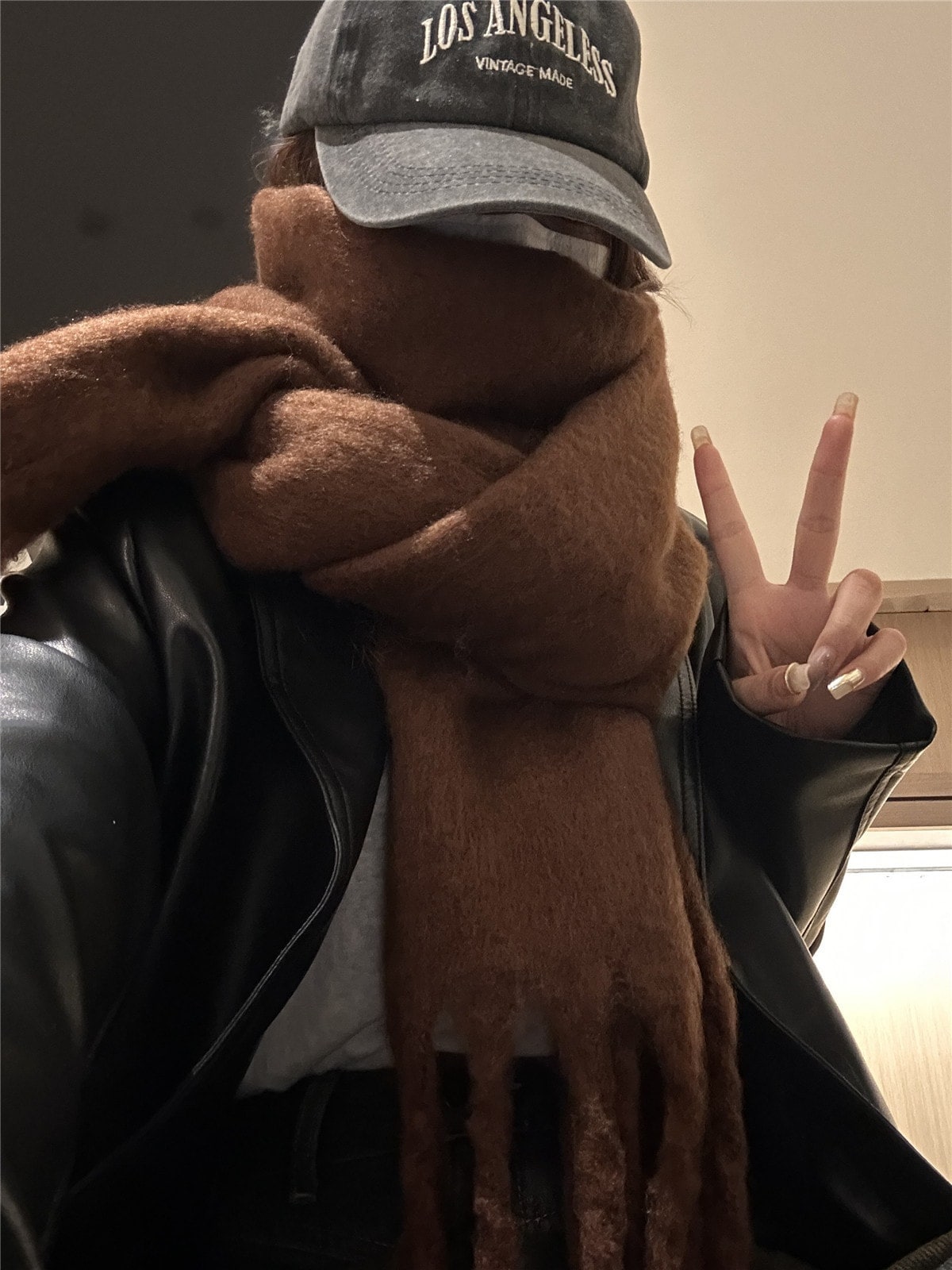 無地厚手ロングマフラー女性用 2025秋冬新作風冬学生万能ショール女性用ネックウォーマーピンクマフラー