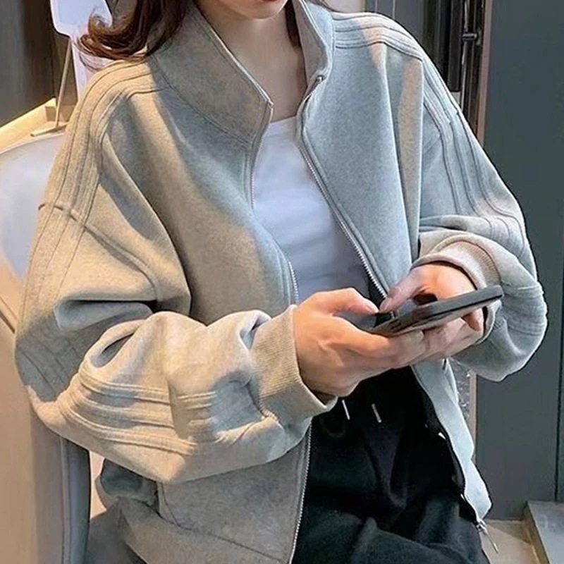 ショート丈スポーツジャケット(レディース) 2025年新作秋冬 低身長向けジャケット ゆるい風合い 野球シャツ風トップス レディースジャケット・野球シャツ