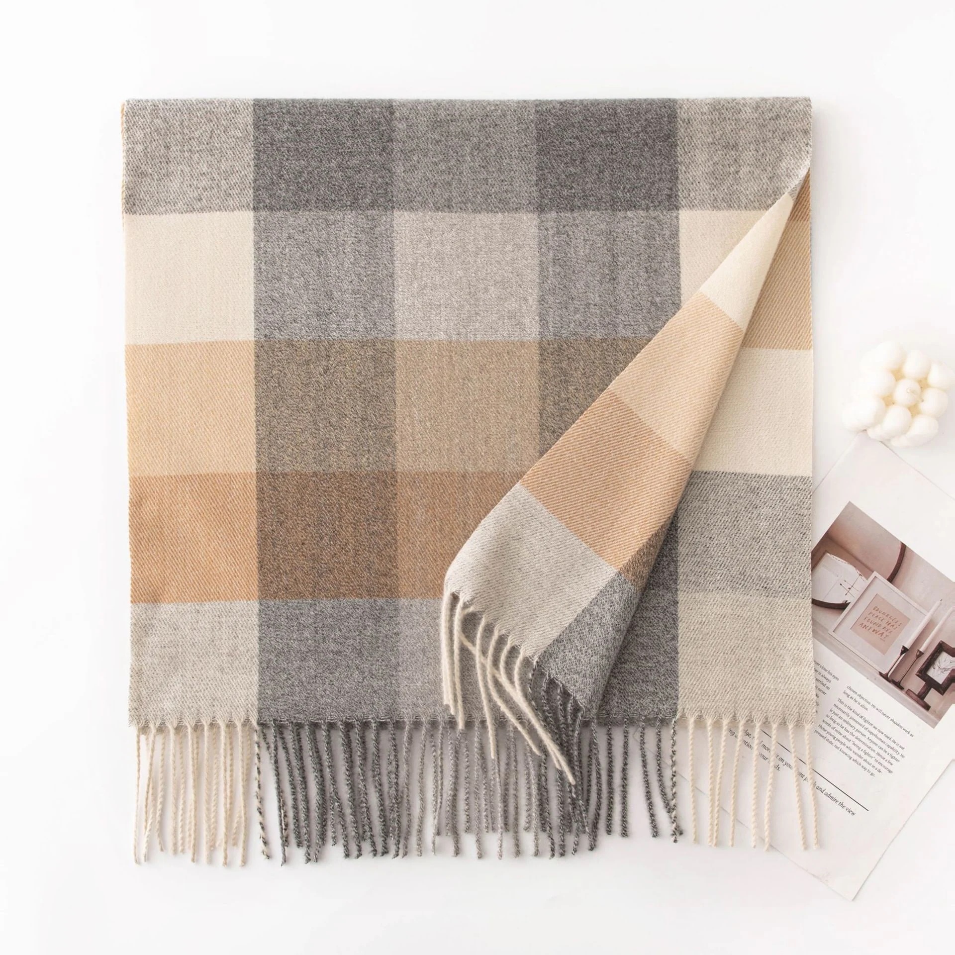 新作秋冬カシミア風チェック柄スカーフ(レディース) 万能で上品な雰囲気の冬用マフラー・レディースショールスカーフ