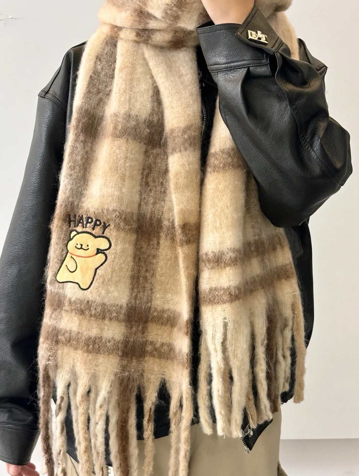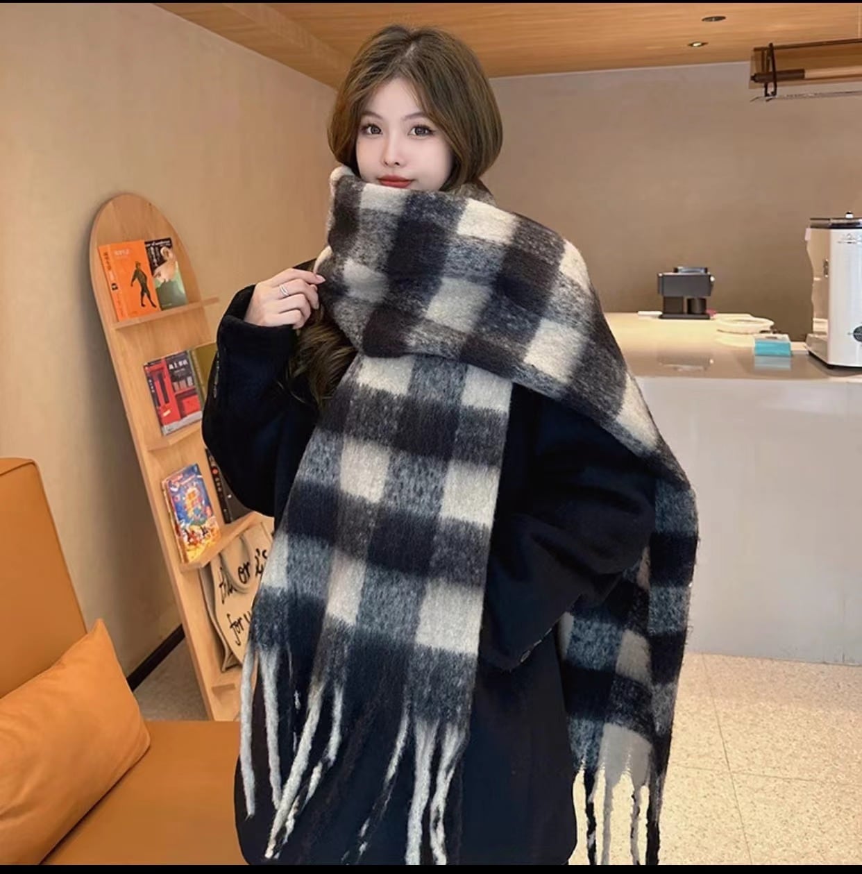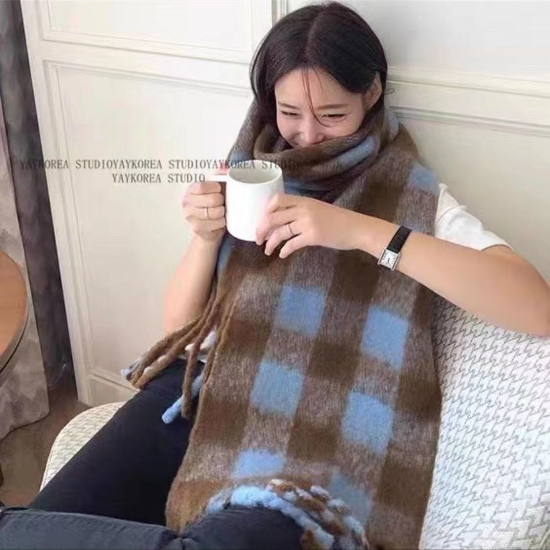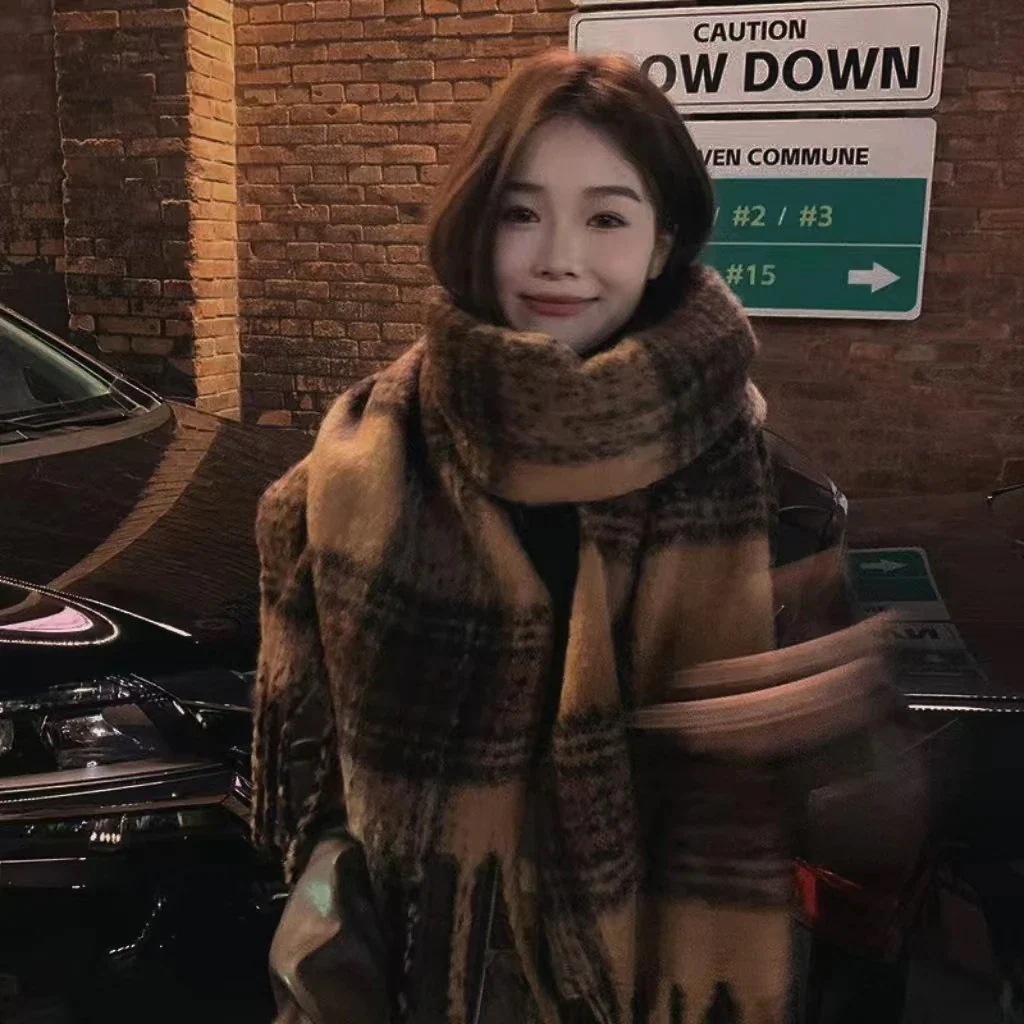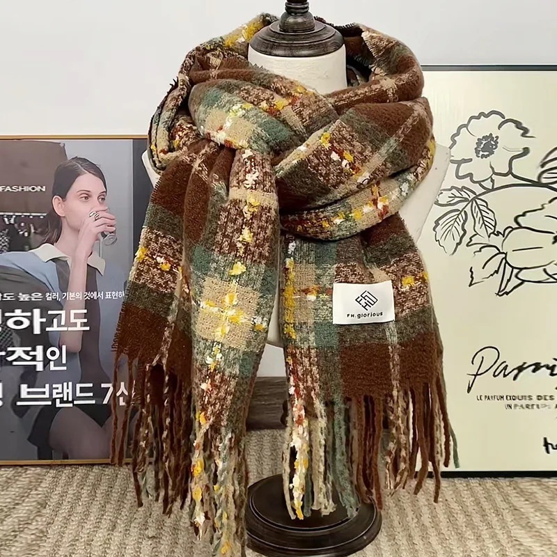 秋冬スカーフ女性用冬用カシミア風スカーフ 風雰囲気マフラー防寒チェック柄スカーフ軽奢感スカーフ