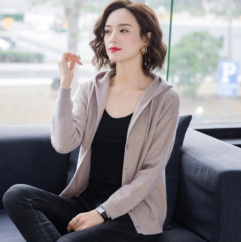 ニット レディース 春・秋用 2023年新作 早秋・秋用 2-8月 ショート丈 アウター カジュアル ゆったり フード付き セーターコート ニット