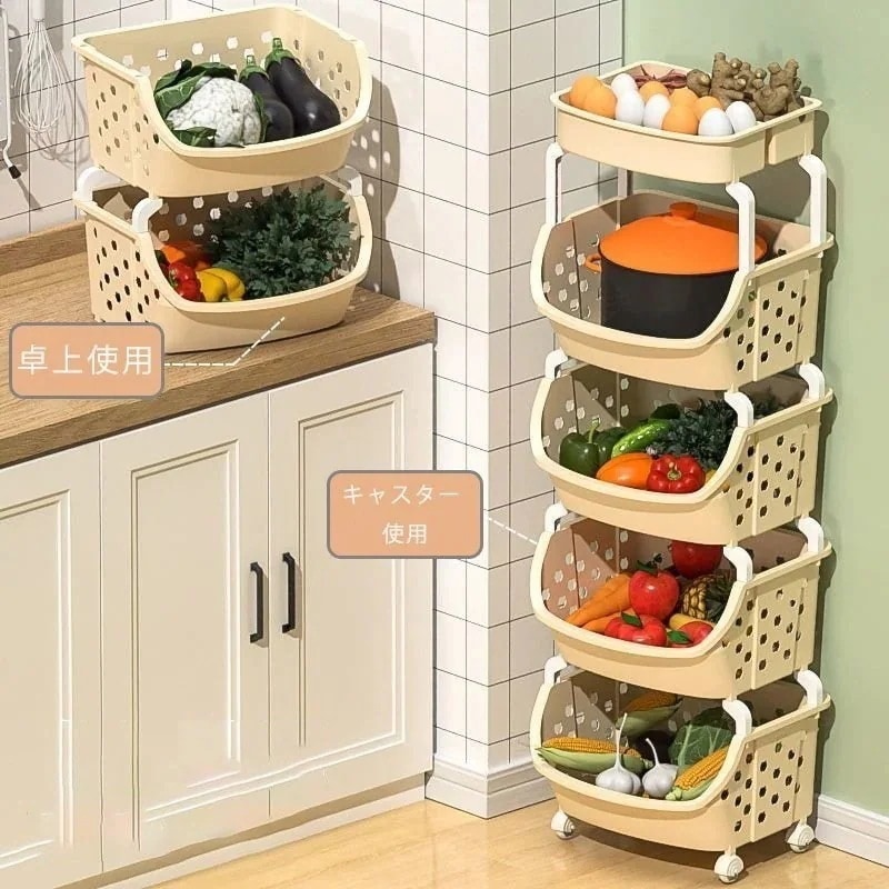 キャスター付き収納ワゴン 収納ラック ワゴン 選べる5色 3タイプ キッチン収納ワゴン 移動自由 ラック 収納棚-423903
