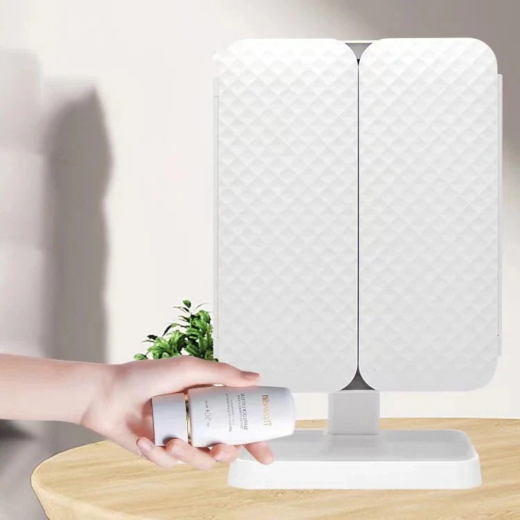 女優ミラー 卓上ミラー 三面鏡 LEDライト 折りたたみ 拡大鏡 三色調光 明るさ調整 角度調整 タッチボタン USB充電式
