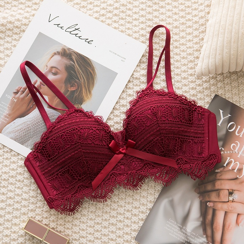 レースの下着女性の小さな胸を集めたコイルレス少女の快適なセクシー調整型文ブラ