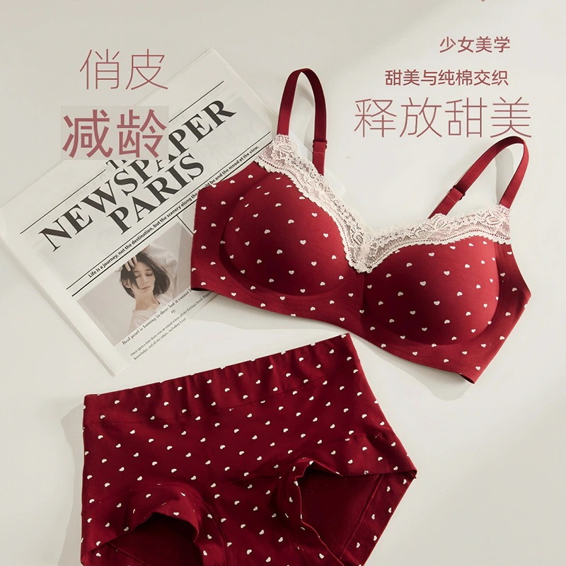 レース綿の下着女性の胸を集めた薄いスチールリングなしで快適で通気性が良く甘い花の傷のない少女ブラジャー