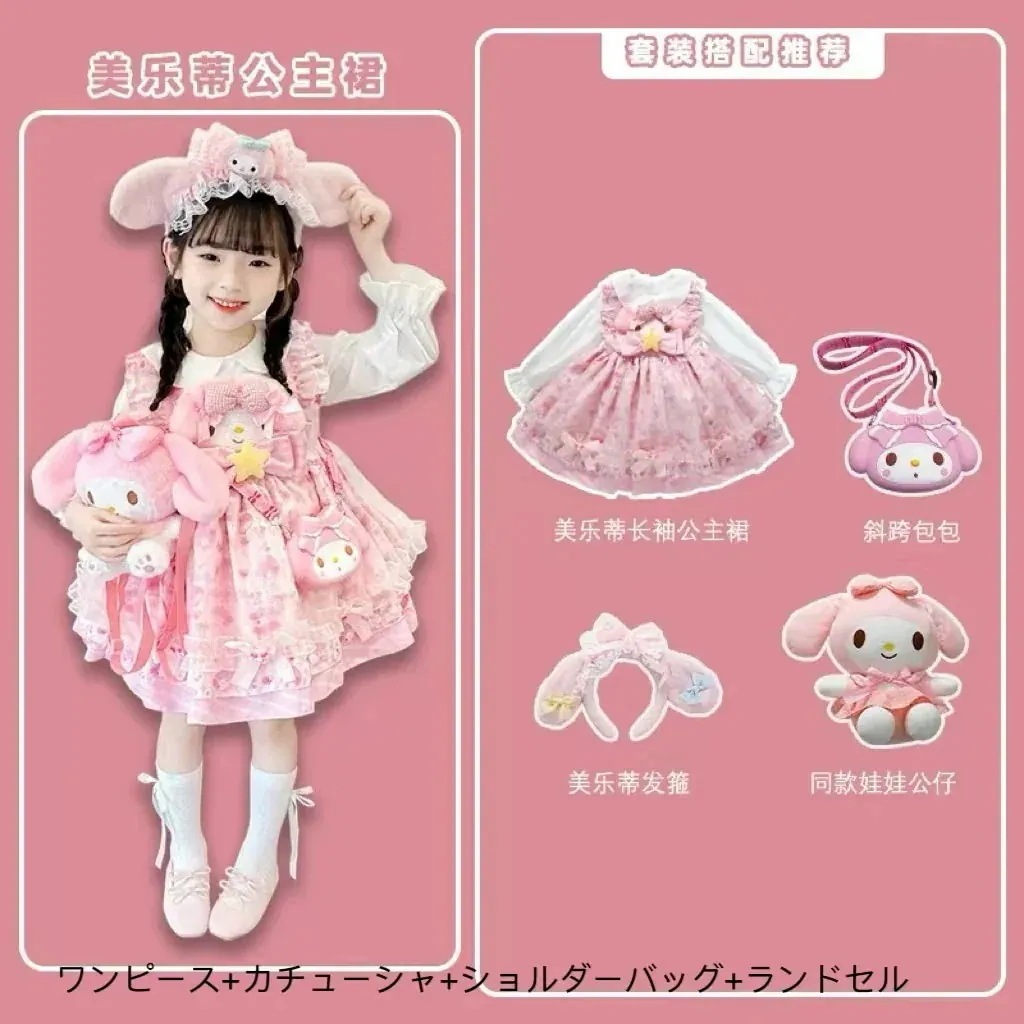 限定数量可愛いサンリオ マイメロ キッズ ルプリンセス ドレス 春秋 長袖 ワンピース 女の子セット ドレス チュール ガールズ スカート コスプレ 誕生日クリスマスプレゼント 4点セットコスプレ服