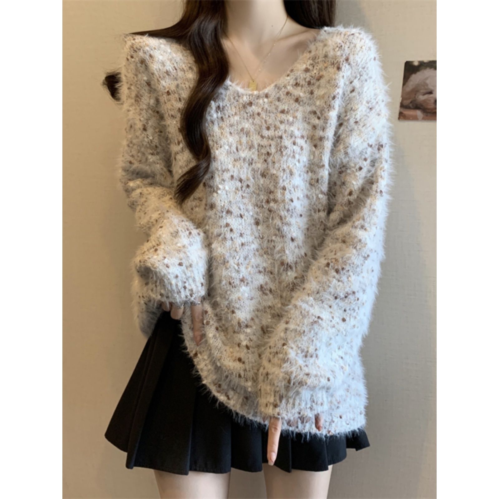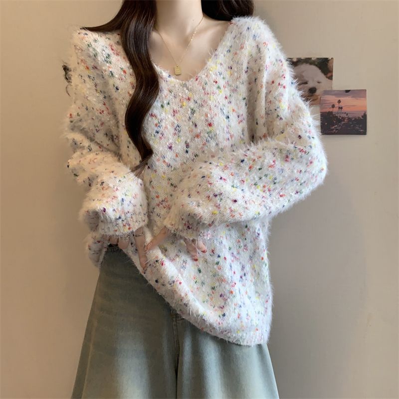 カラー Vネック レディース 長袖 セーター ゆったり 怠惰な風 もちもちし きれい ニット