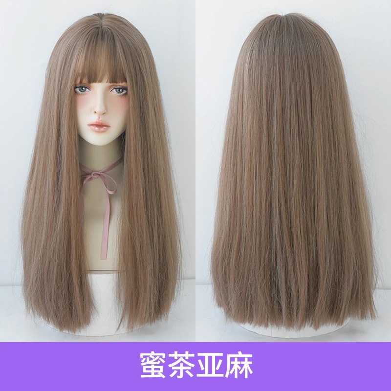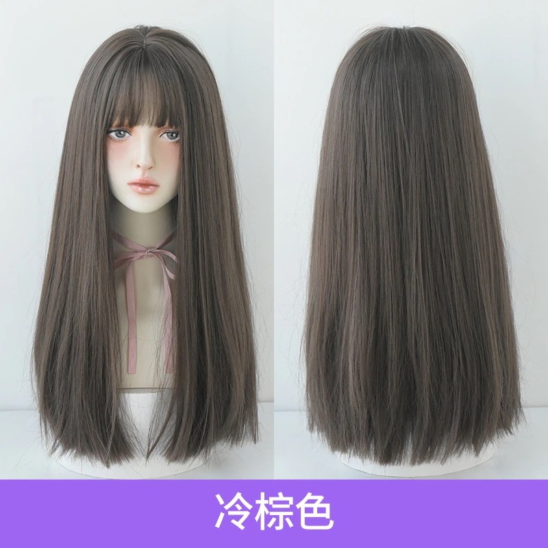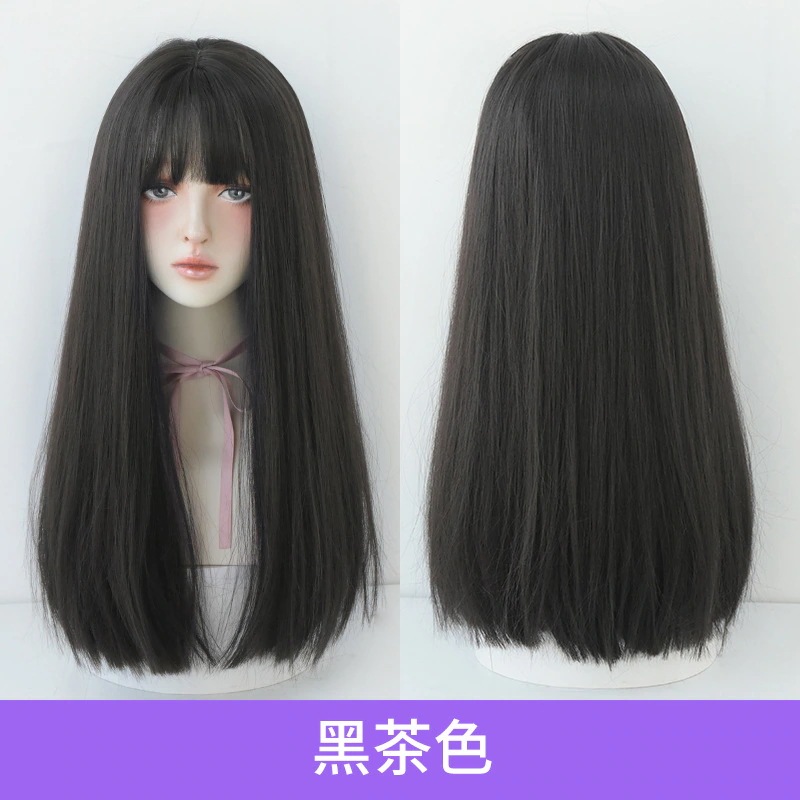 ウィッグ女性用ロングヘア フルウィッグ ブラックストレート ナチュラルなエアリー前髪 フルウィッグ