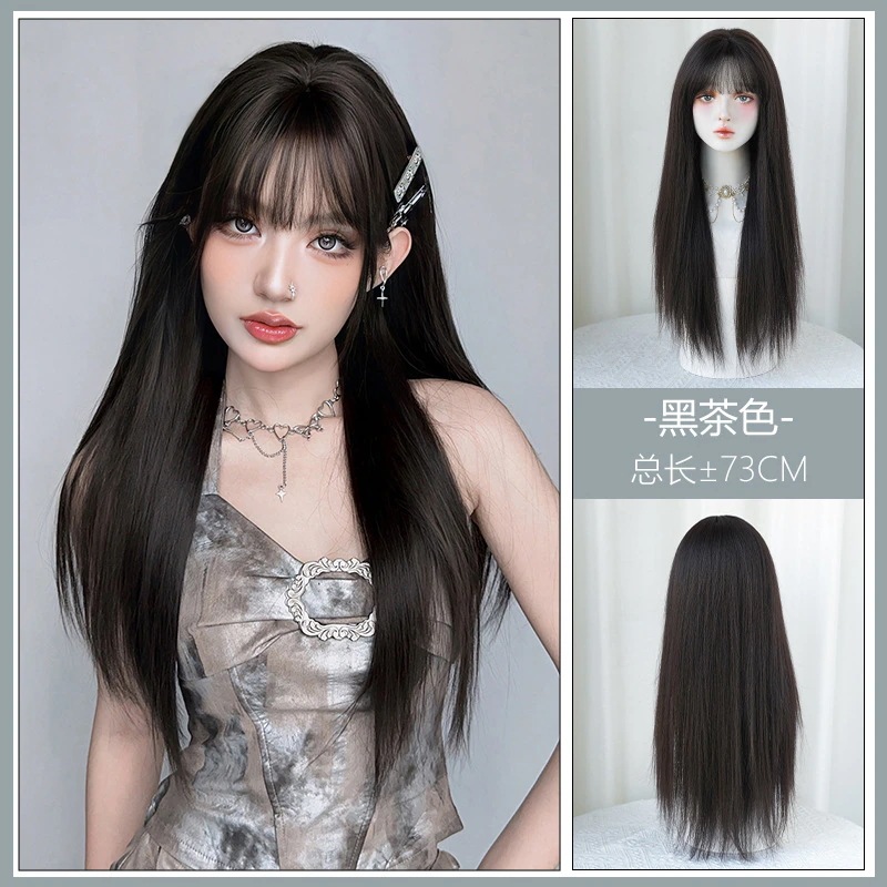 ウィッグ女性用ロングストレート ブラックフルウィッグ 前髪付き リアルなセットアップウィッグ 超ロングストレート