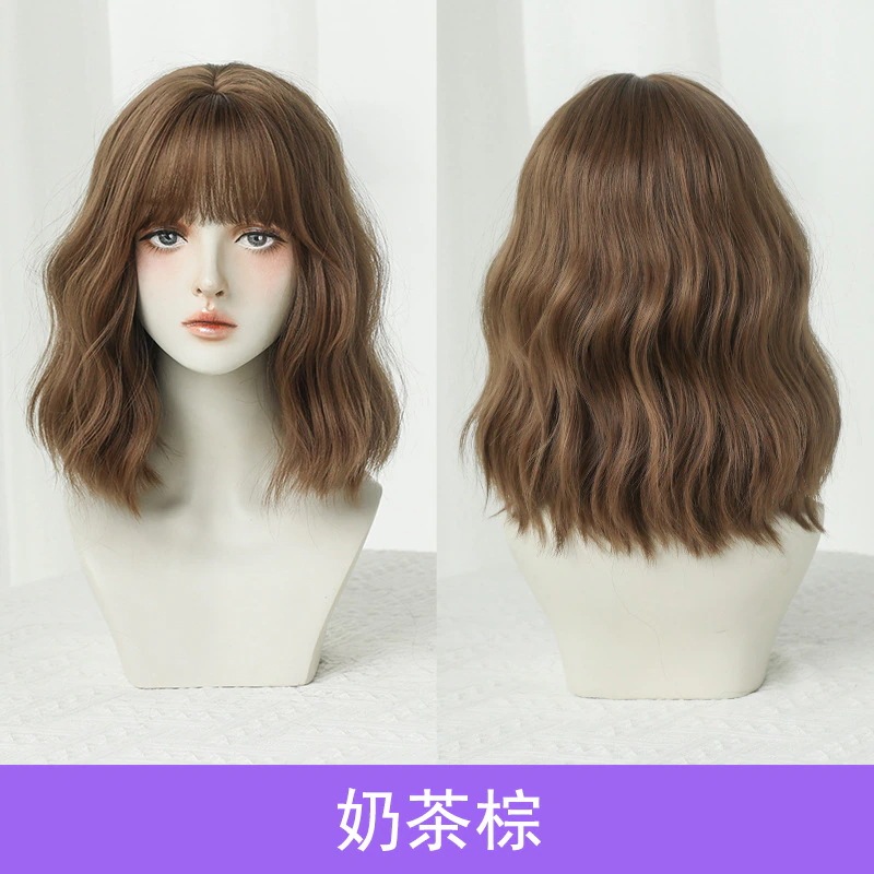 かつら女性用ミディアムロングカール新作ウールカールウェーブ巻き髪肩丈フルウィッグリアルフルヘッド