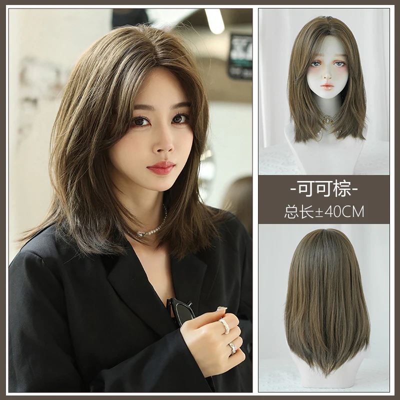 ウィッグ女性用ミディアムロングフルウィッグ鎖骨丈ショートヘア自然なリアル感