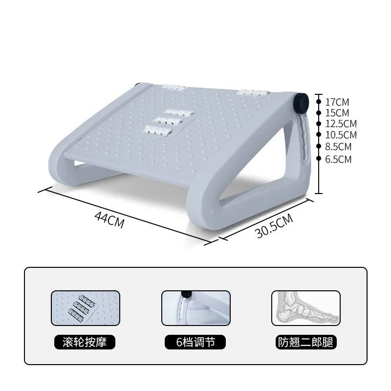 フットレスト デスク下 足置き 角度・高さ6段階調整可能 滑り止めラバー付き 取扱簡単 足台 机の下 足置き台 フットスツール 自宅 オフィス用 42*31*cm