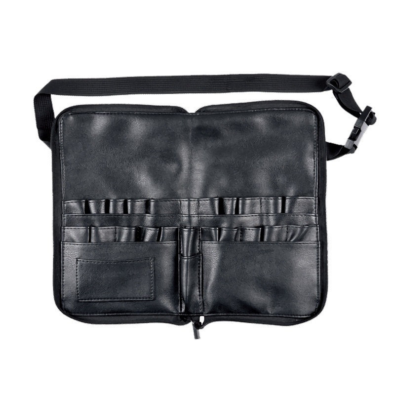 プロ用 化粧ブラシ収納バッグ メイクアップアーティスト ウエストポーチ PUレザー 大容量 ファスナー付き 出張メイク サロン用