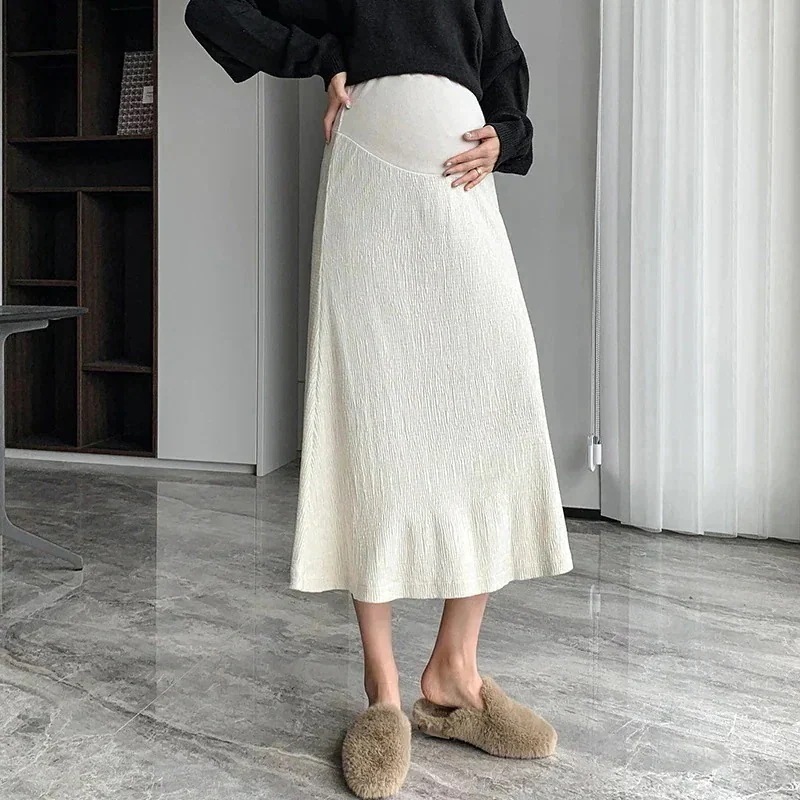 リアルショットマタニティドレス ゴールドベルベットスカート 新作プリーツスカート ハイウエスト スリム ミドル丈 妊婦 ワンピース トレンド マタニティ
