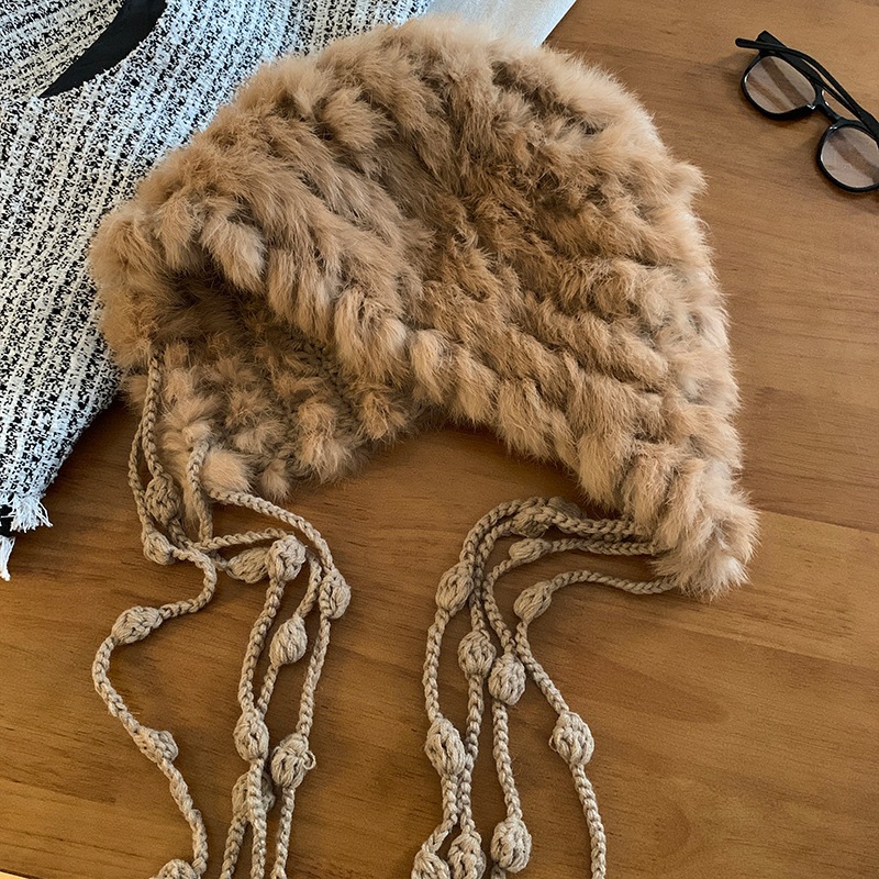 ラビットファー 耳あて付き ニット帽 レディース ふわふわ 防寒 小顔効果 秋冬 韓国風 フライトキャップ
