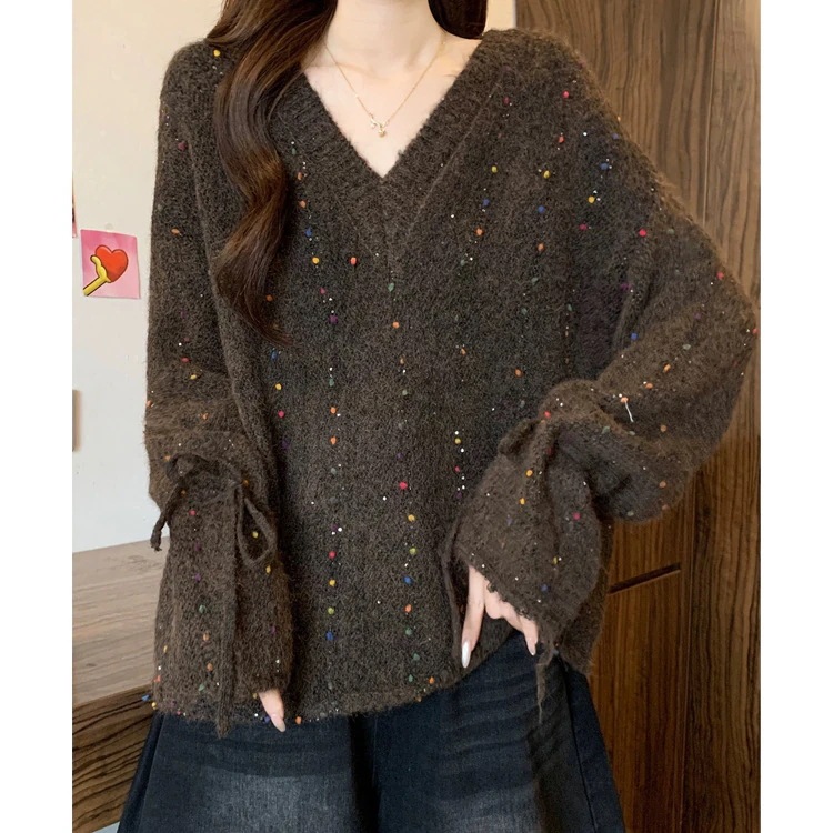 秋冬の新作フック毛玉v襟ゆったりコーデュロイニットセーター デザイン感セットセーター