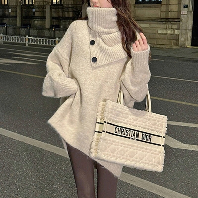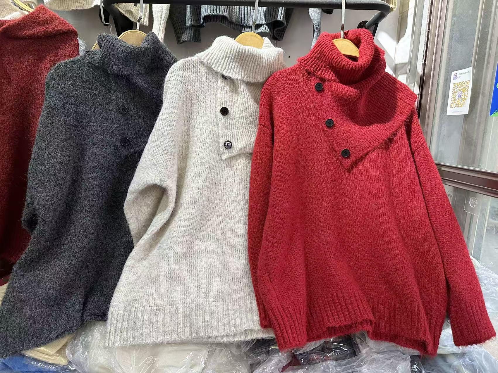 冬ならではの素敵ニット洋風シックなトップスモコモコ コートニューイヤーレッド取り外し可能ネックセーター