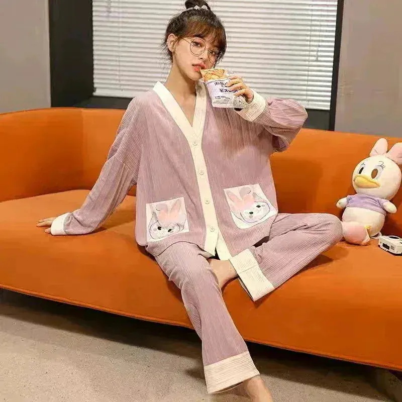 パジャマ レディース 綿 肌触り ルームウエア 部屋着 前開きパジャマ 前開き 長袖 秋冬 ナイトウエア Vネック コンフォート 肌触り 長袖パジャマ 入院