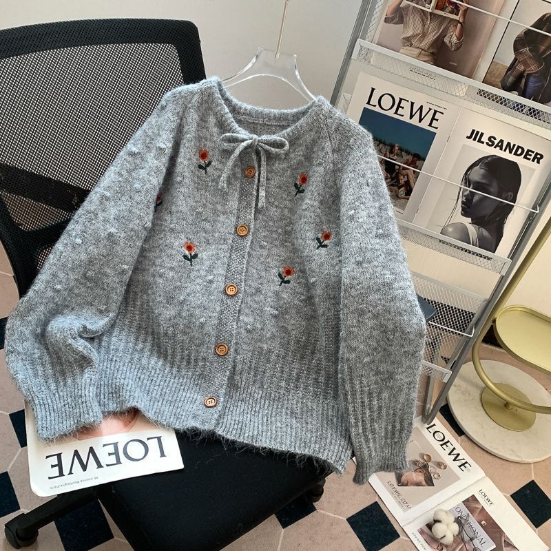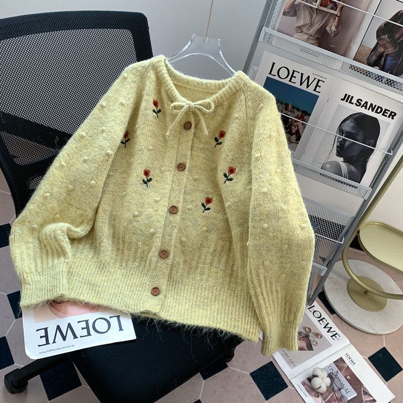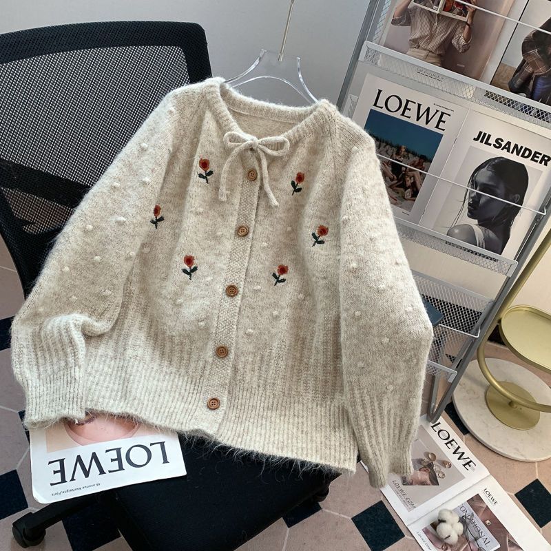 春秋 レディース 刺繡 お花 甘い ニット ファッション 着痩せ 肩を正し 厚手 セーター カーディガン