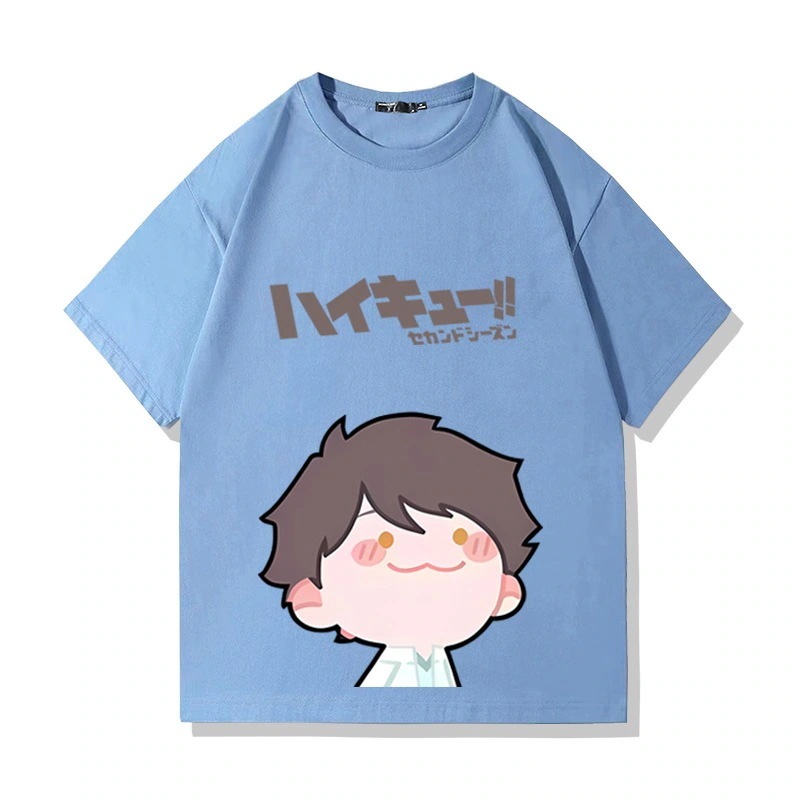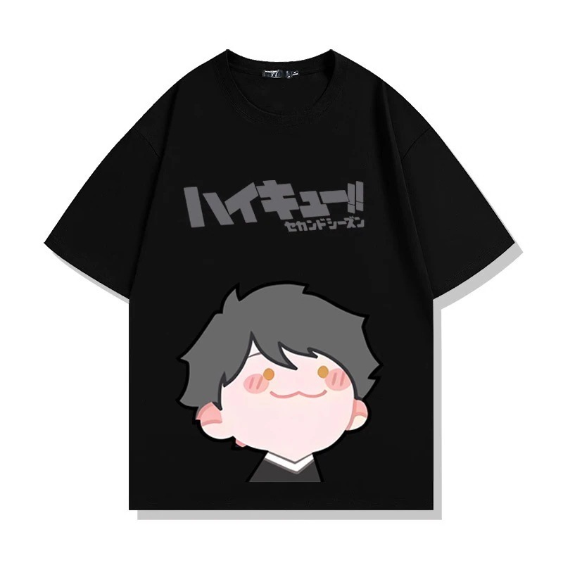 日本アニメバレーボール少年純粋な綿半袖 T シャツ男性と女性のための夏のトレンディなブランドルーズオフショルダー半袖トップス