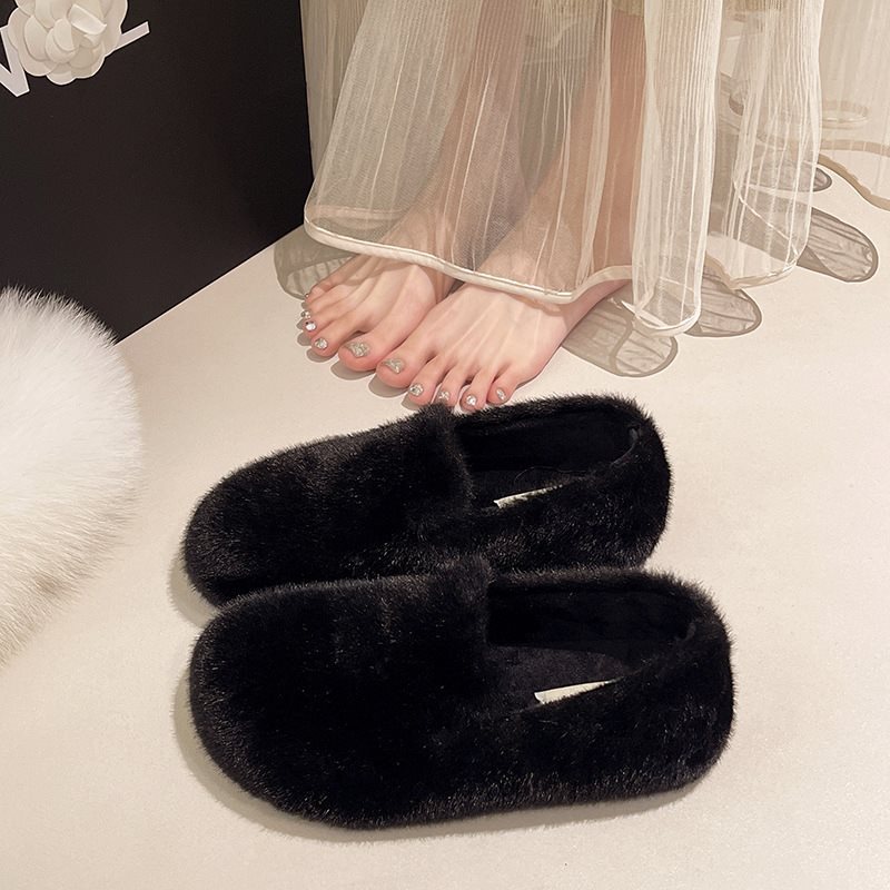 【早い者勝ちタイムセール】モカシンモコモコシューズファーシューズ可愛いぺたんこ靴フェイクファーあったか冬パンプス