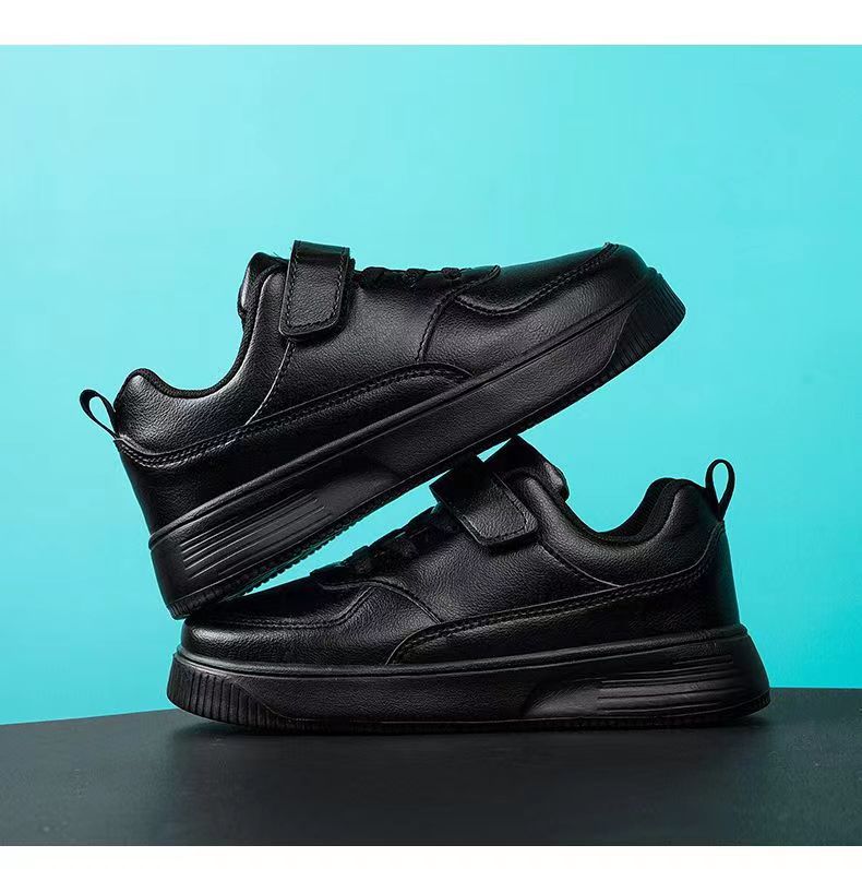 [送&料無料]新品登場 滑り止め学生の滑り止め革面スニーカー春秋子供用板靴防水黒靴白靴