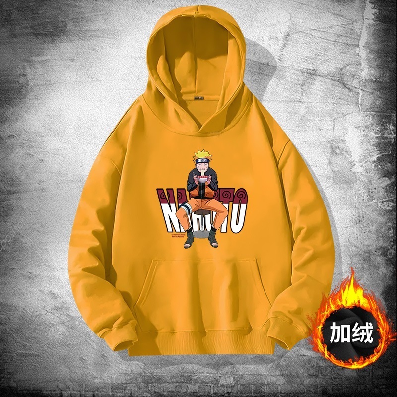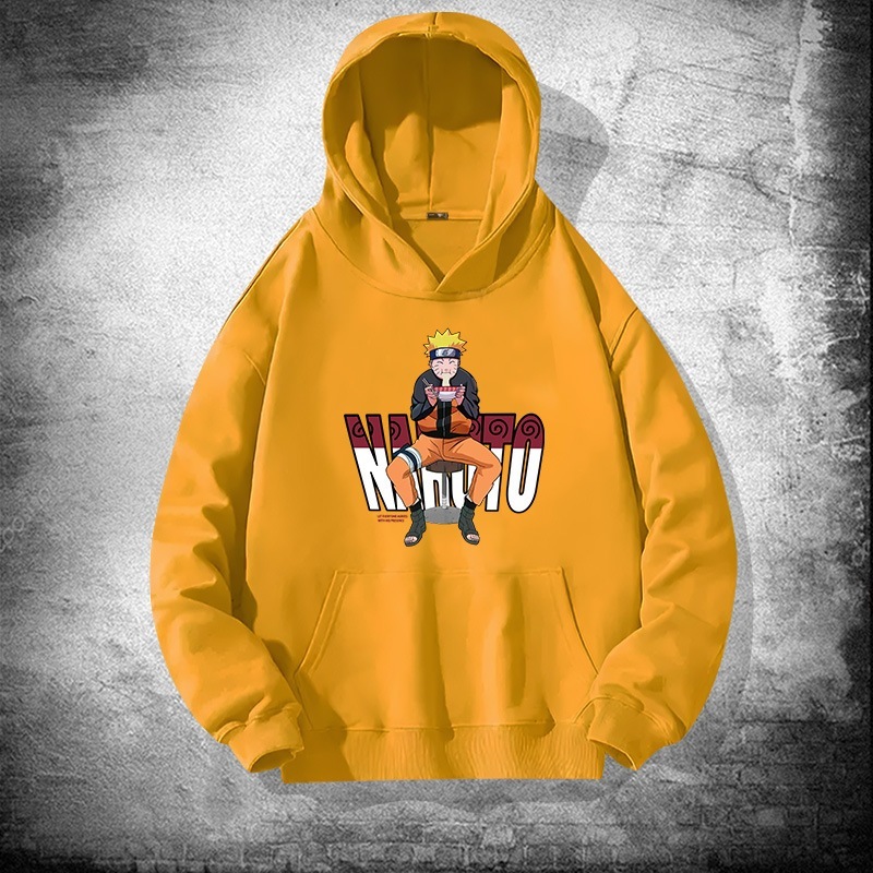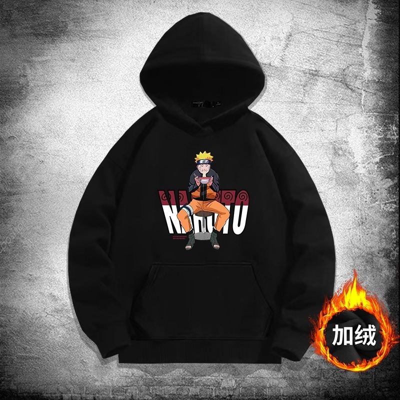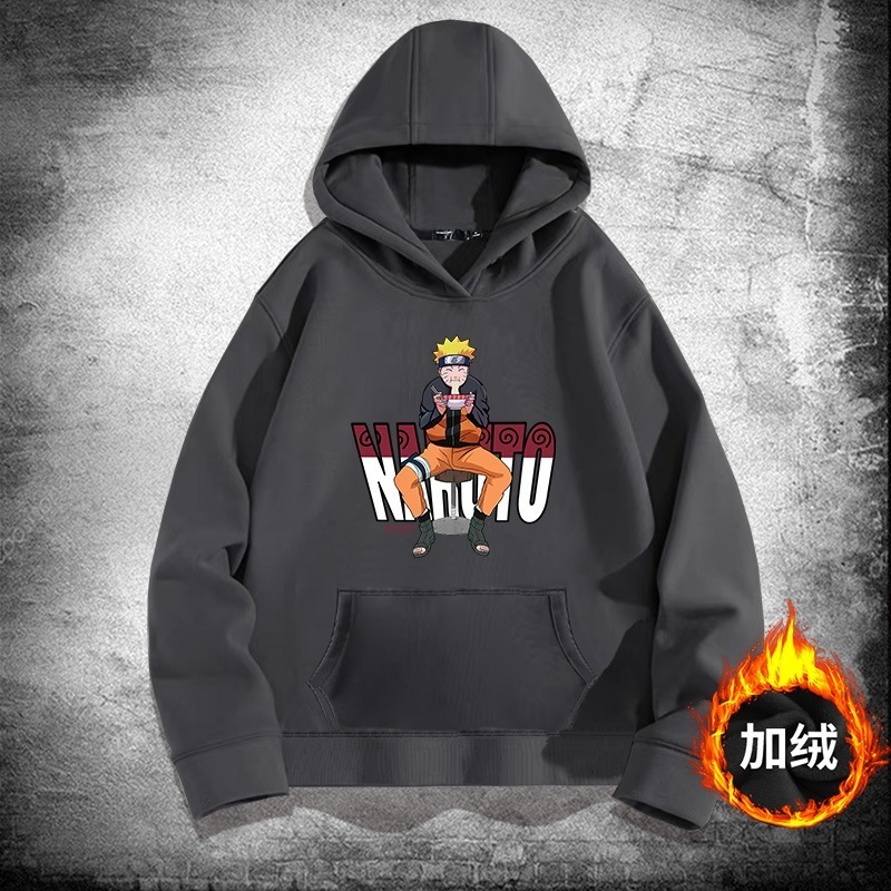 アニメの火影忍者ナルトの帽子のパーカーの男性の秋の青少年の潮の札のゆったりしている肩の服のコートに落ちます