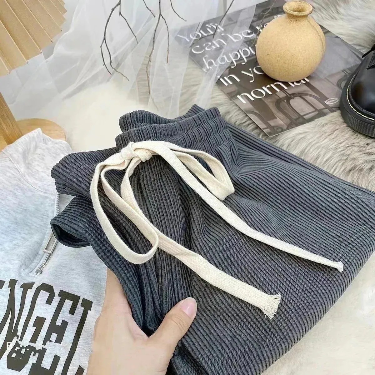 2024春季新作 スラックスパンツワイドパンツワイドパンツレディース薄手接触冷感衝擊の穿き心地ハイウエストアイスシル