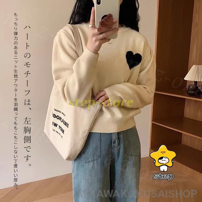 ハートロゴ 新作 トレンド プルオーバー レディース ニットセーター 秋冬 トップス 無地 長袖 上品 着回し シンプル 刺繍 クルーネック ラウンドネック ニットトップス