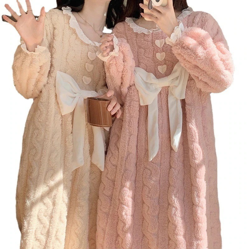 [お買い得]かわいいリボンパジャマ 韓可愛ィー パジャマ ウェア 部屋着 長袖ホームウェアネグリジェ