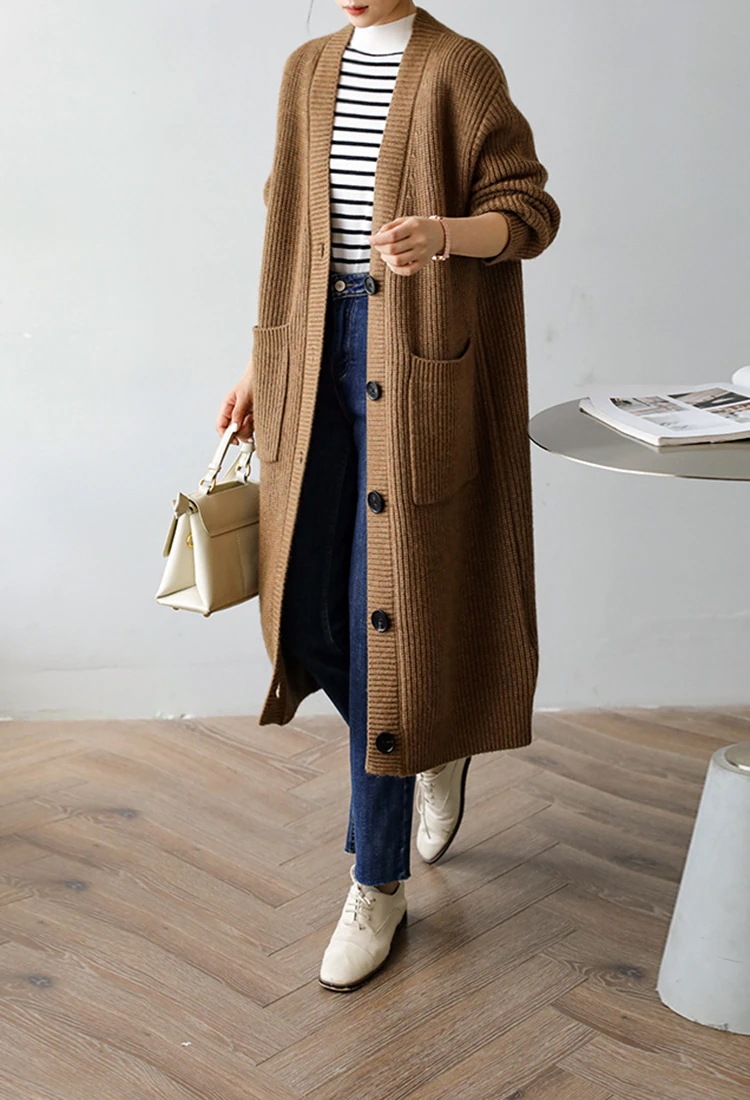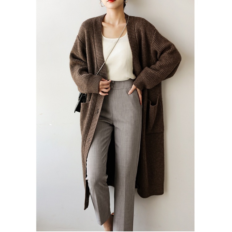 厚手ニットカーディガンコートで秋を先取り レトロなゆったりとした気だるい風のミディアムセーターのアウターカーディガン