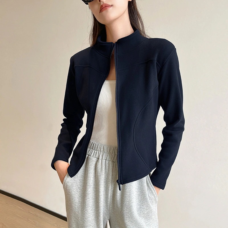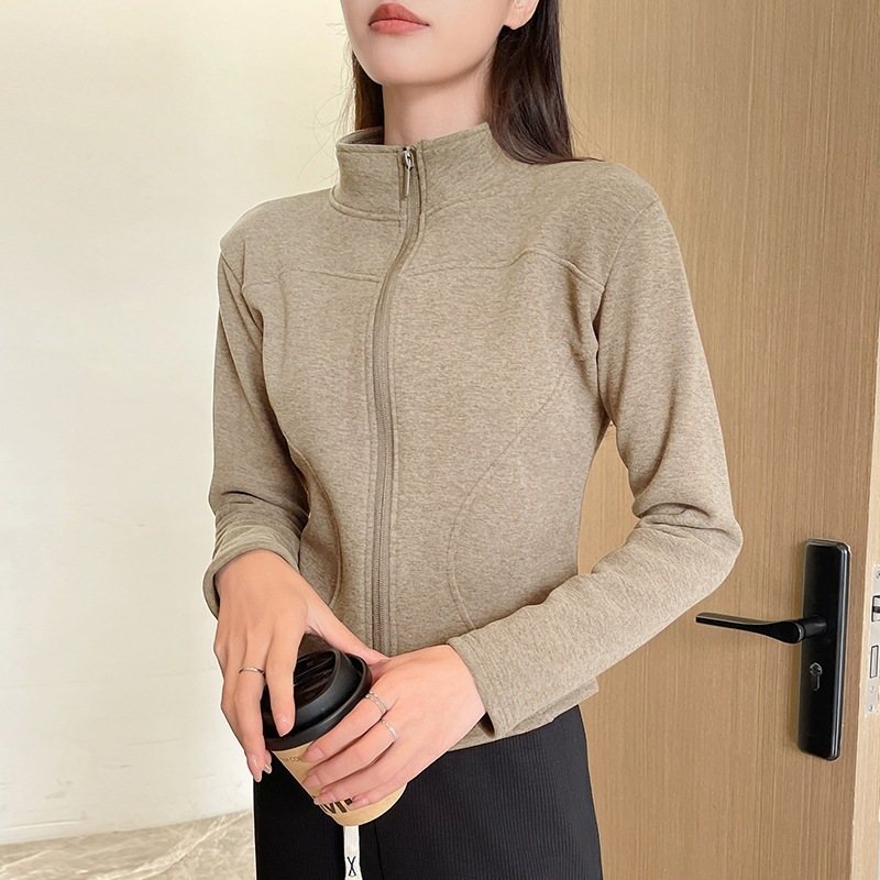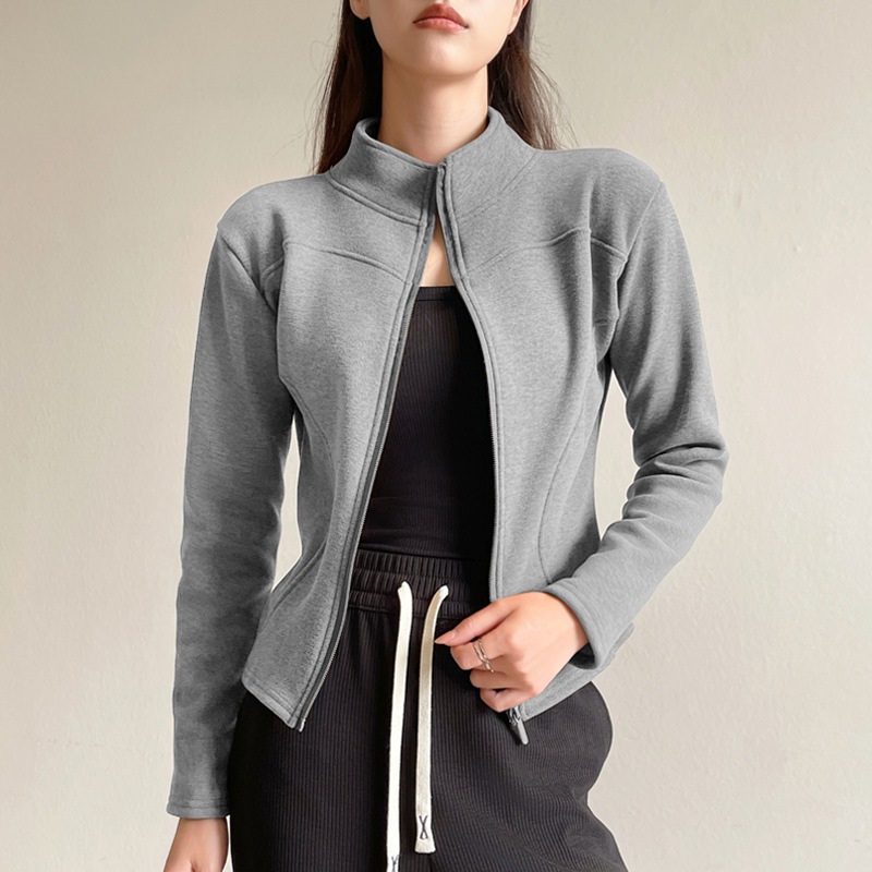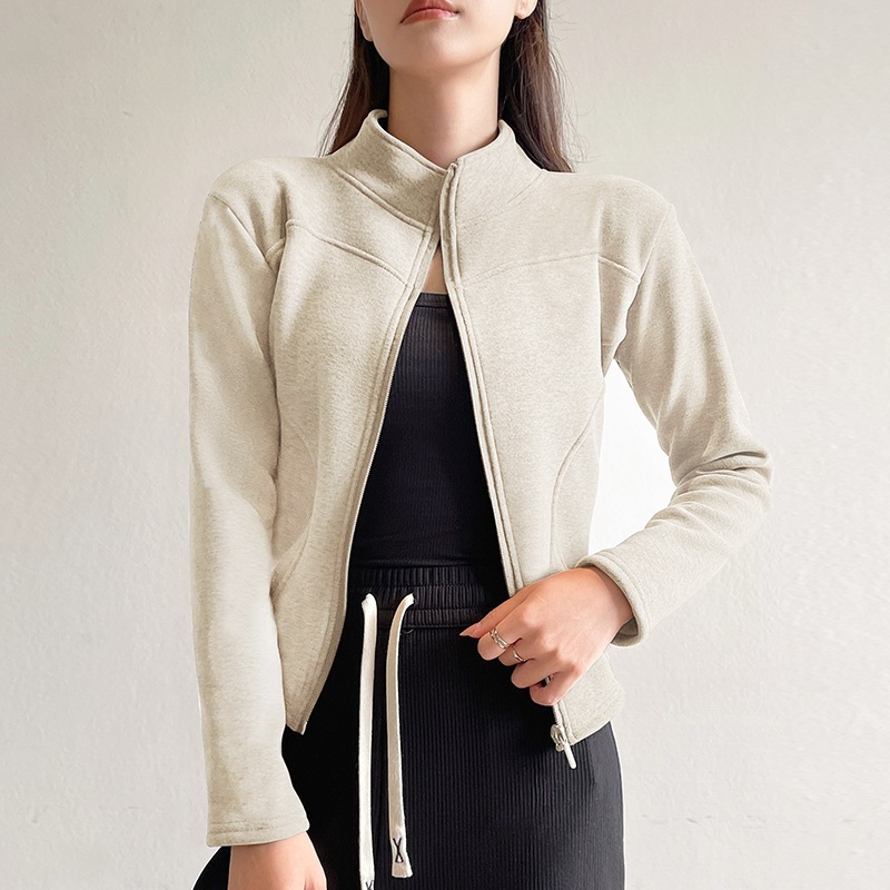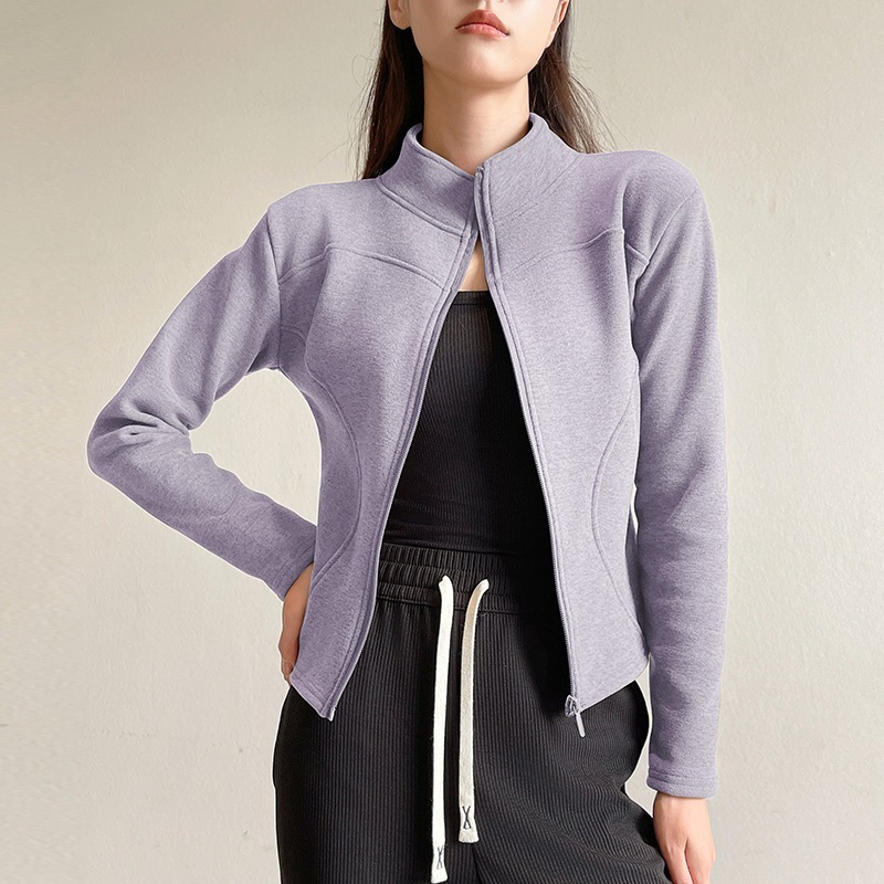 スタンドカラー ショートジャケット フリース パーカー レディース 秋冬 アウター フィット感 裏地付き 厚手 保温性 ヨガトップス