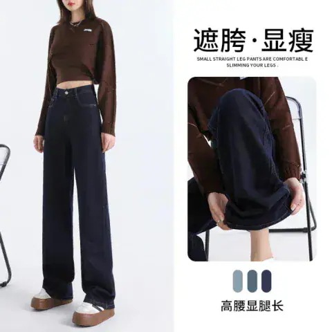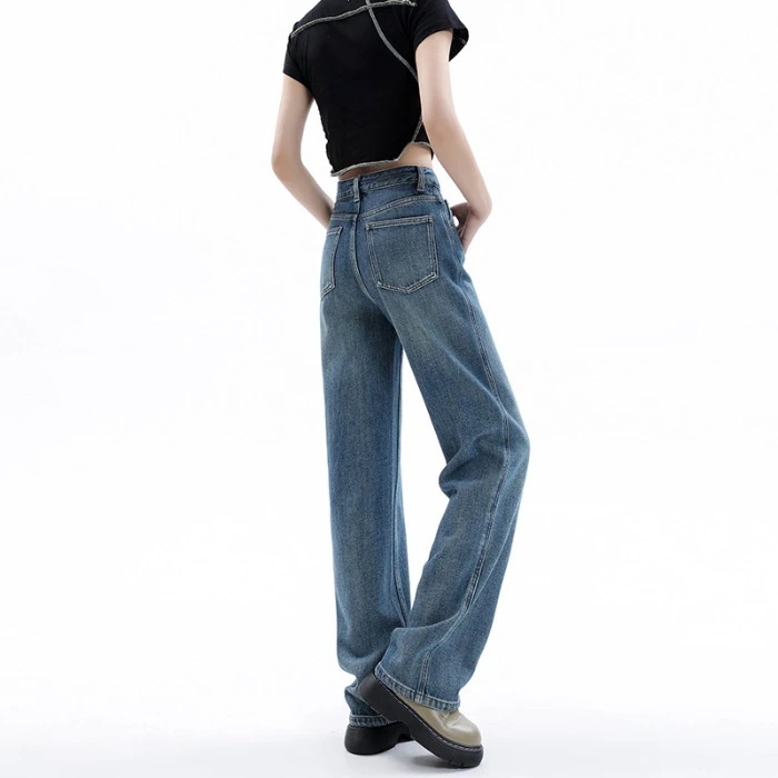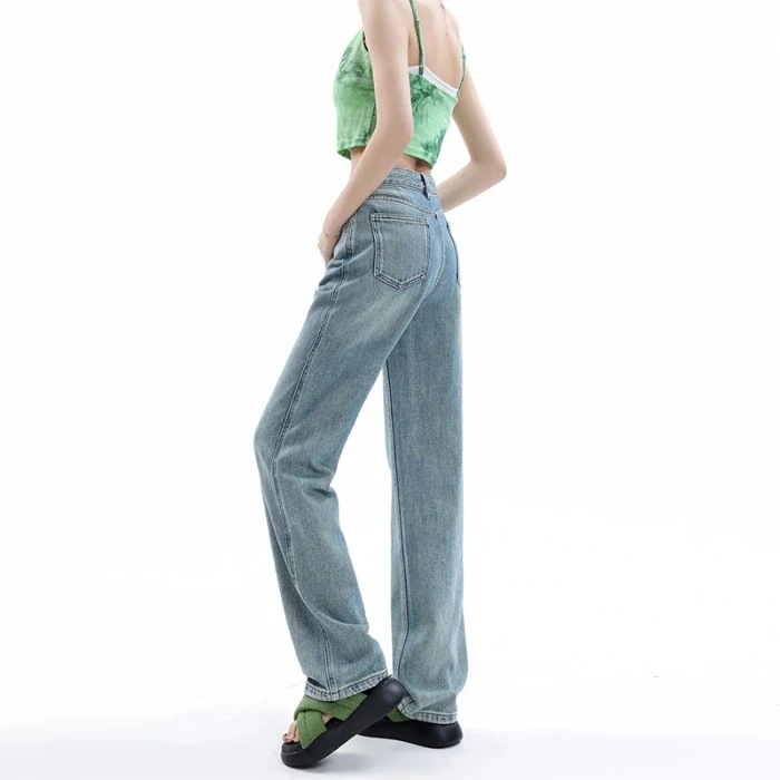 裏地付きストレートジーンズ 女性 新作 ハイウエスト 垂れ感 ピーマン体型 女性用パンツ 小柄 細身ワイドパンツ