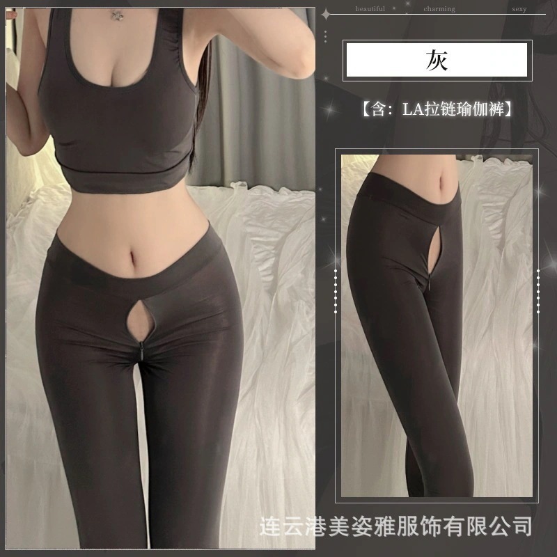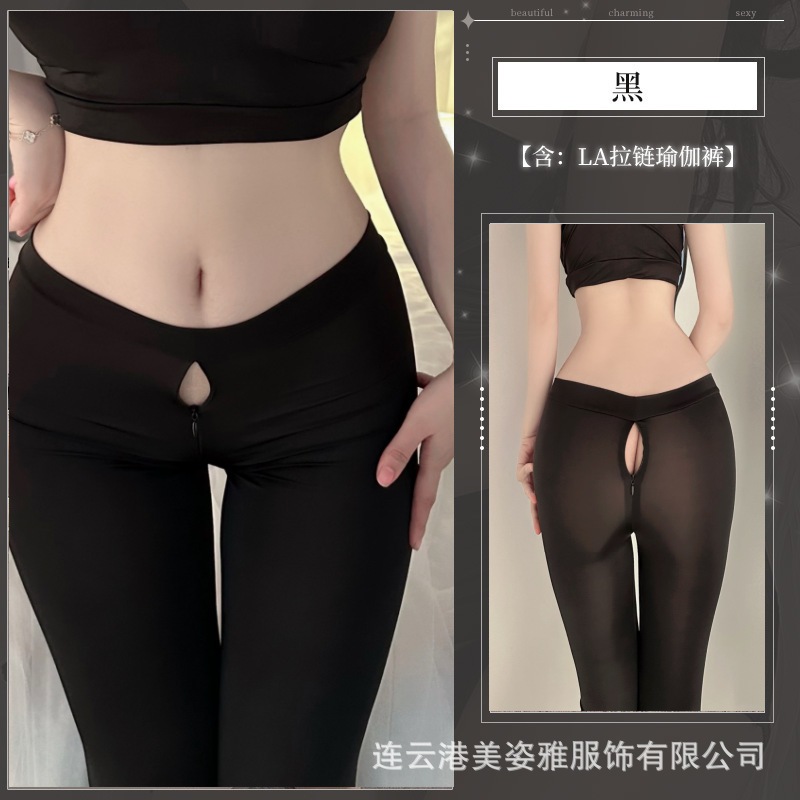 情趣下着股間開き野外ヨガパンツステルスジッパースポーツフィットネスパンツアイスレジャー激情